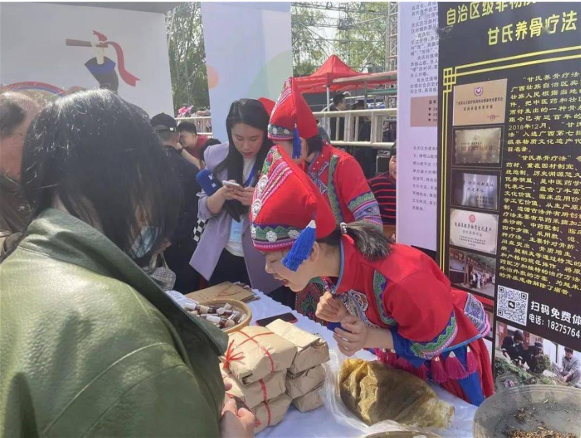 六堡茶、油茶、绣球、麽乜……数十个展位上摆满了种类繁多、五彩缤纷的广西非遗精品、旅游产品,让武汉市民目不暇接。