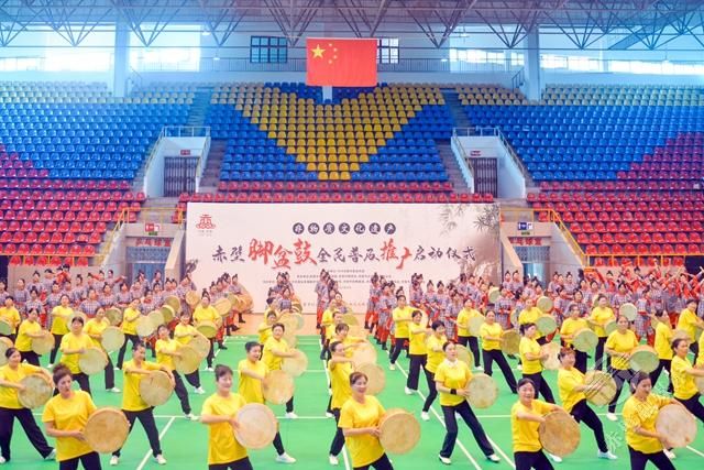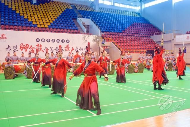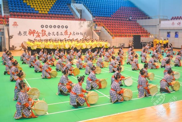 5月26日,赤壁市体育馆隆重举行赤壁脚盆鼓全民普及推广启动仪式,弘扬中华优秀传统文化,传承赤壁非遗锣鼓技艺,激发脚盆鼓项目活力。脚盆鼓鼓点咚咚,气势如虹,随着精彩节目的一个个呈现,现场掌声不断,好评如潮。