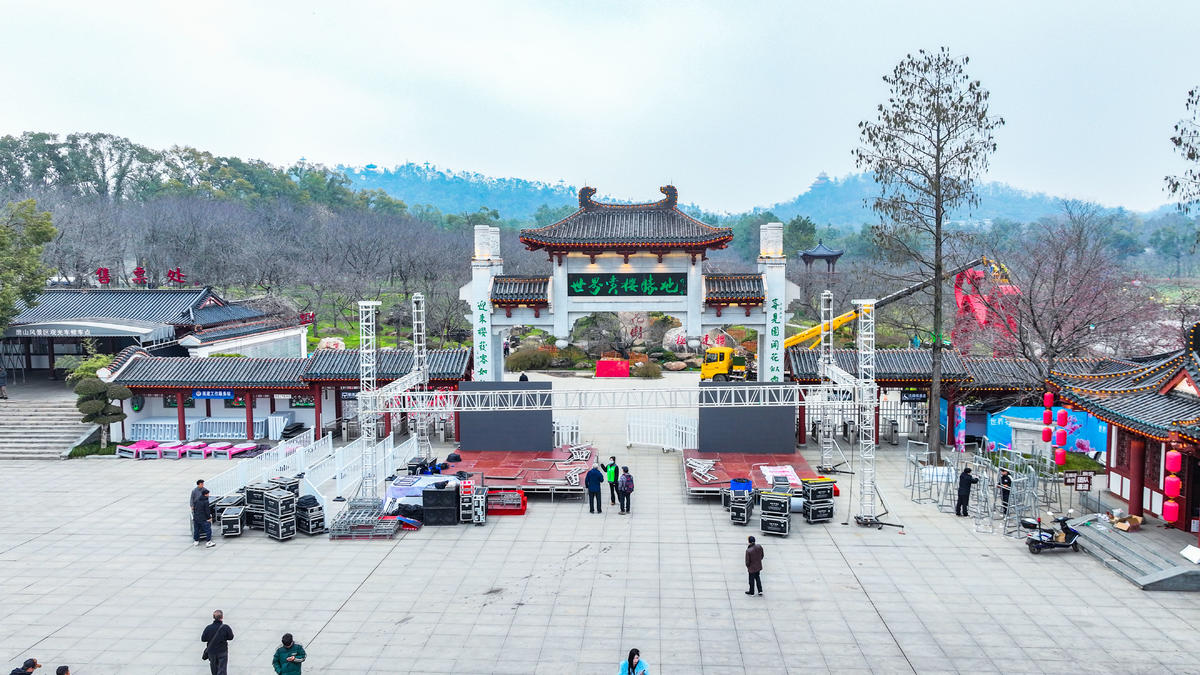 东湖景区正在尽力扩大停车区,应对即将到来的赏樱人海