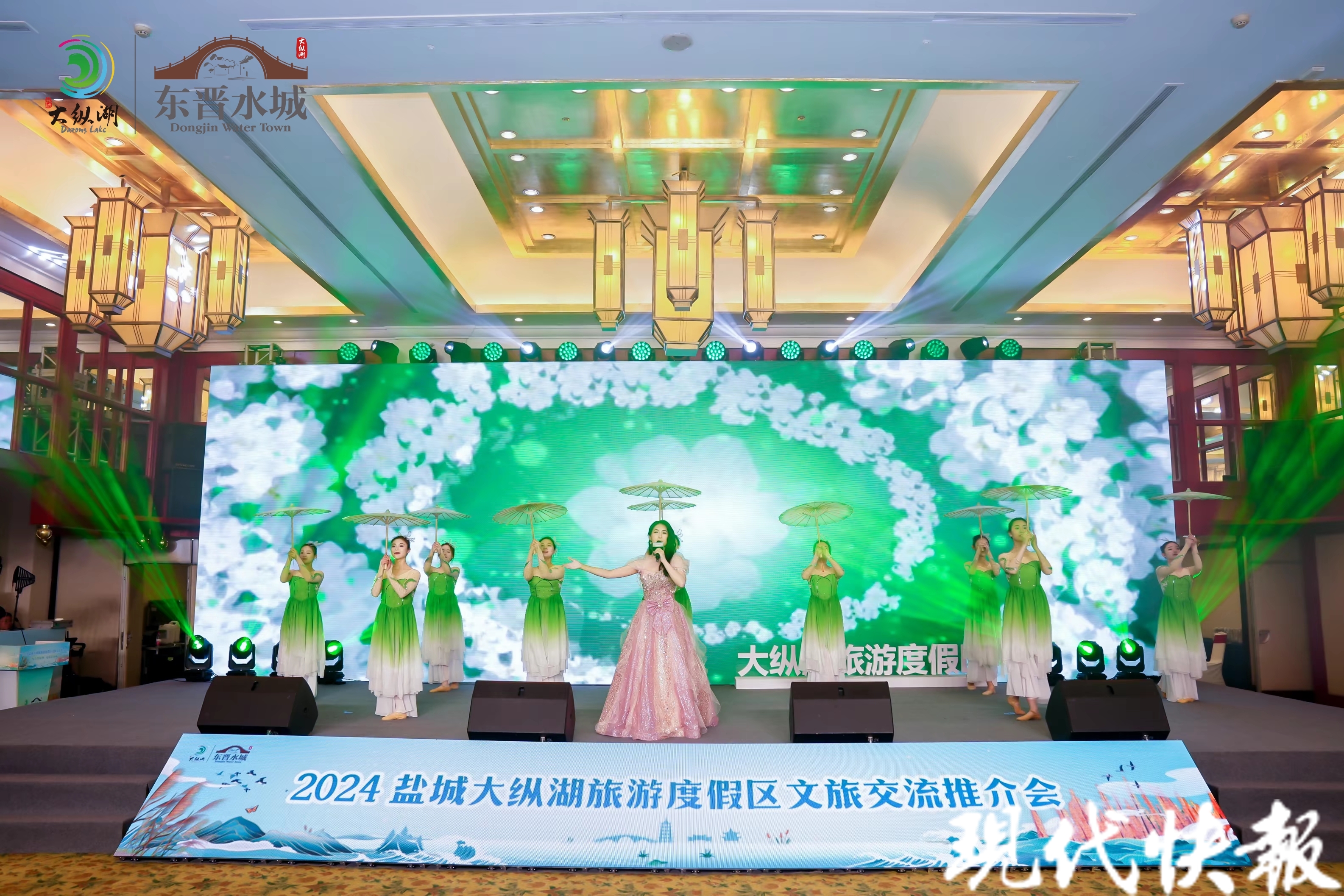 历史与未来交织,传统与现代共舞,盐城大纵湖是追寻多元化体验的好去处。当天,舞台上精彩节目连连,展示了盐城大纵湖不同视角的美,赢得了在场观众的阵阵掌声。大纵湖旅游度假区党工委书记、管理办公室主任冯林宏介绍,度假区作为盐都区全域旅游业的龙头,以旅游产业发展为主,主要由大纵湖景区、东晋水城、影视城、绿丘营地、湖塘花海等景区组成,是国家湿地公园、国家水利风景区、国家4A级景区、省级旅游度假区、省级湖荡风情特色小镇创建单位和省生态文明教育实践基地,是省级职工(劳模)疗休养基地、长三角职工疗休养基地、省级生态岛建设试验区首批次建设单位、盐都区“两山”理论实践创新基地龙头板块。