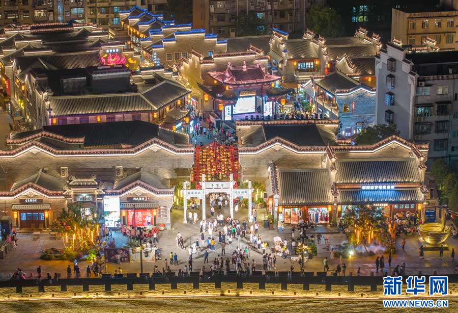 图为襄阳古城夜景璀璨,吸引众多游客前来游玩,观赏古城夜景。新华网发 杨东 摄