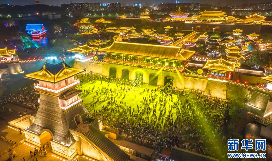 图为襄阳唐城景区夜景。新华网发 杨东 摄