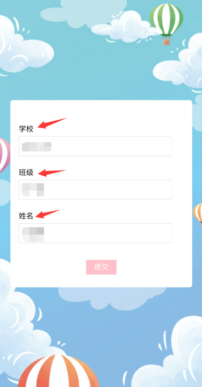 2.填写学校、班级、姓名等信息,成人可以不填前两项