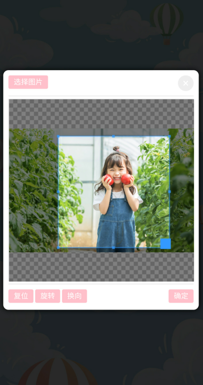 3.点击上传照片,从文件或相册中选择1张帅照,用手调整框线,选取合适的照片区域,点确定按钮