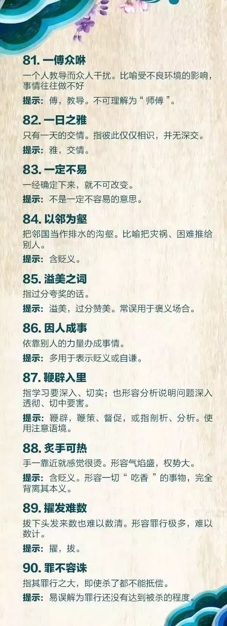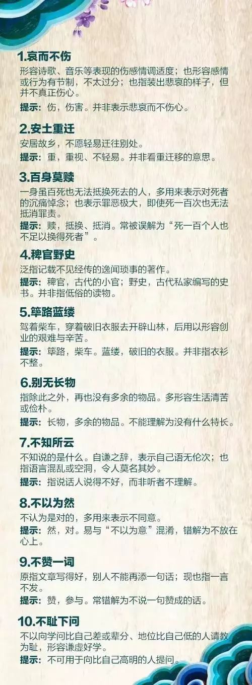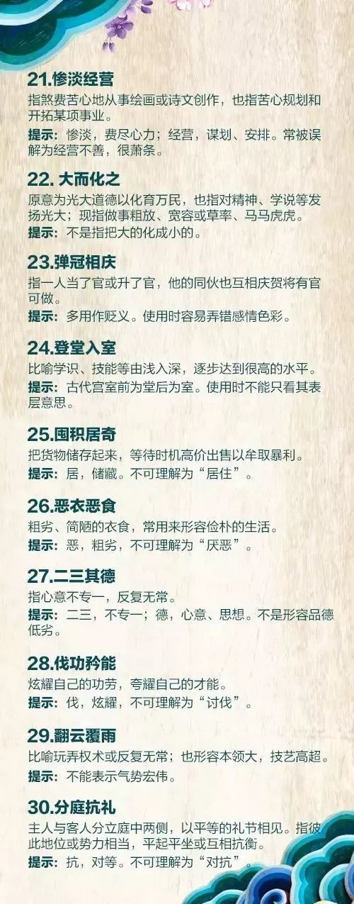 “曾几何时”指时间过去没有多久,不是曾经的意思;“大而化之”形容做事疏忽大意、马马虎虎,不是把大的化成小的……