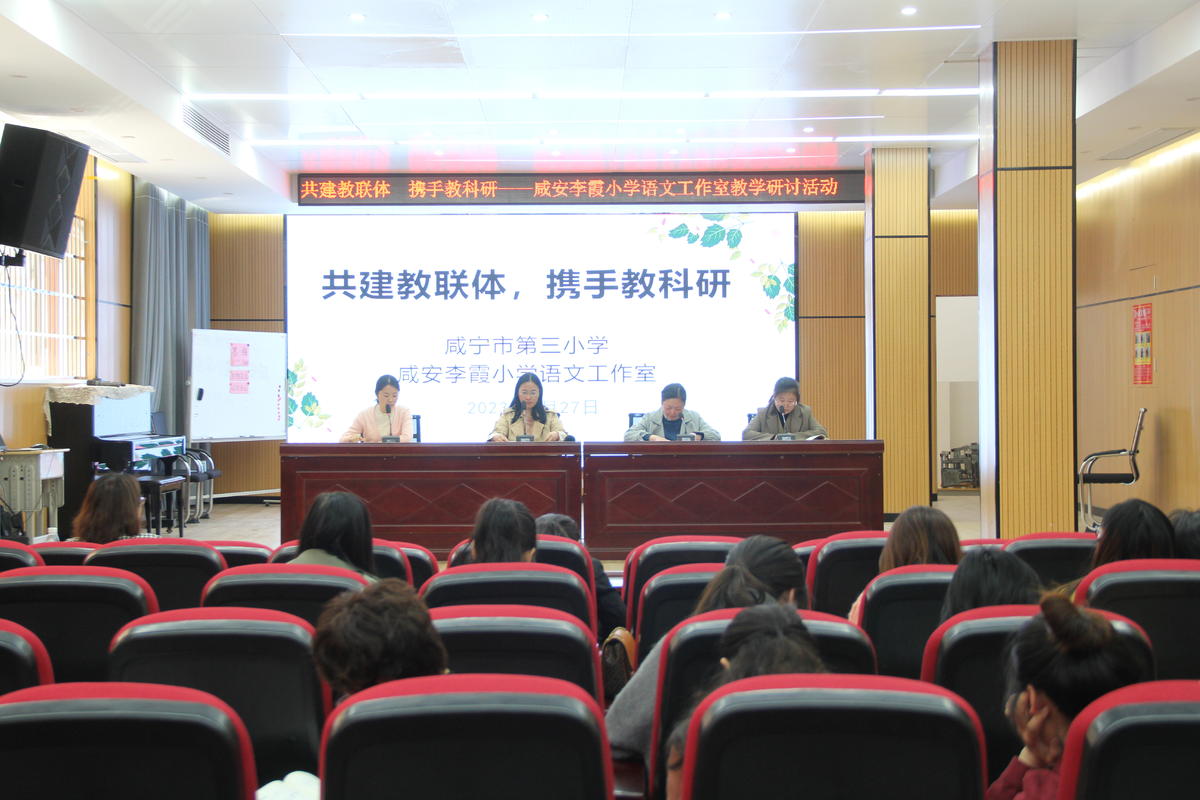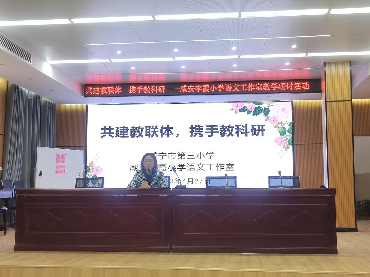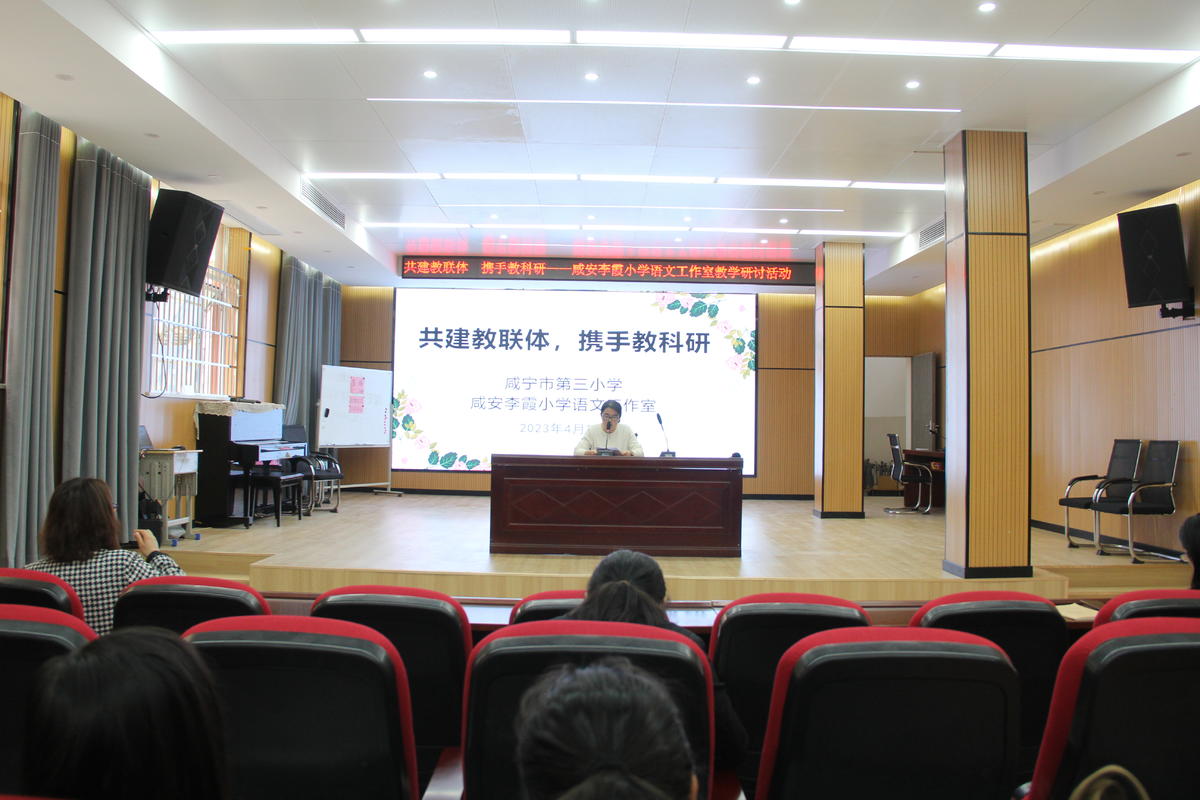 4月27日上午,咸安李霞小学语文工作室教学研讨活动在咸宁市第三小学举行,两校领导和语文教师代表参与活动。