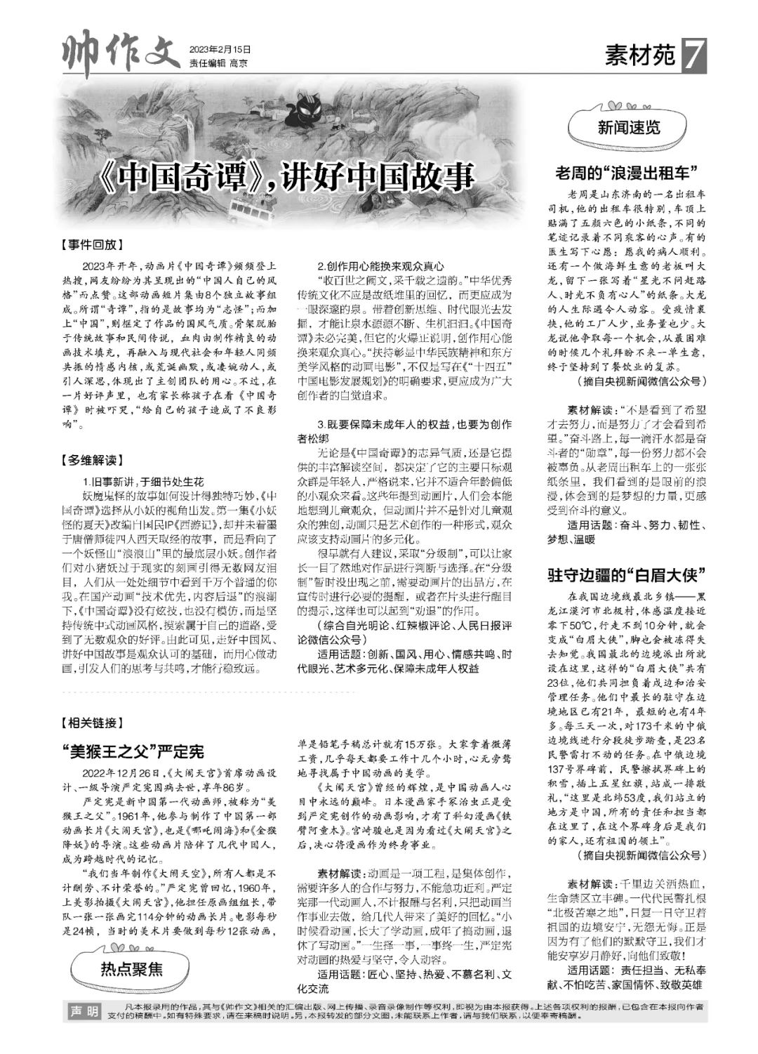 “故事是有力量的”,《帅作文》高中版2月15日刊登《中国奇谭》讲好中国故事,触动观众心灵↓