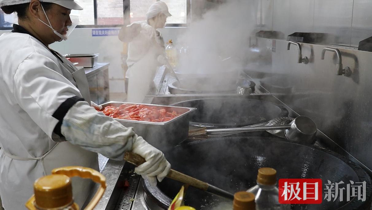 后厨另一侧,38岁的余丽燕正熟练翻炒着大锅菜肴。拥有10多年餐饮经验的她,曾为照顾上学的孩子关闭了自己的餐馆,如今在学校食堂重拾老本行,得心应手。“学校后厨六成都是学生家长,大家有共同语言,比在家闲着充实多了。”余丽燕笑着说。“从食材采购时的严格筛选,到烹饪过程中的规范操作,每个环节都有完善的管理制度。尤其是食品安全上,食堂实行‘明厨亮灶’,所有工作人员都必须持健康证上岗,这些严谨细致的要求,让我特别放心把孩子放在学校吃饭。”