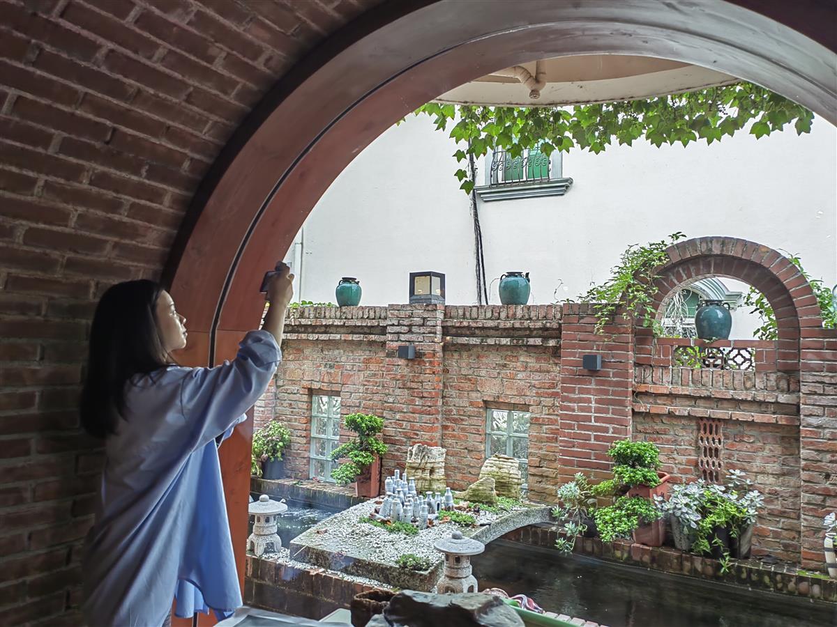 讲座之前,极目新闻记者来到赵逵家中专访。他的家很特别,院子里有用红砖做成拱型的走廊,用木结构的鲁班锁做成亭子,屋顶使用了透光的玻璃砖,传统和现代的元素在建筑里完美融合。赵逵说,建筑师要给别人设计更好的生活方式,首先要自己热爱生活。
