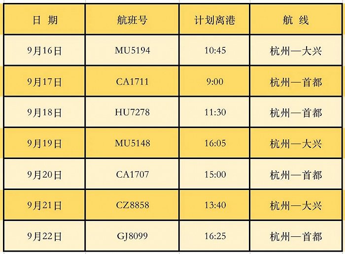 “杭州萧山国际机场”微信公众号消息,9月14日,杭州萧山出现本土疫情。根据民航局疫情防控相关规定,杭州机场调整进京航班,计划9月16日-9月22日期间,每日保留一班进京航班,具体明细如下: