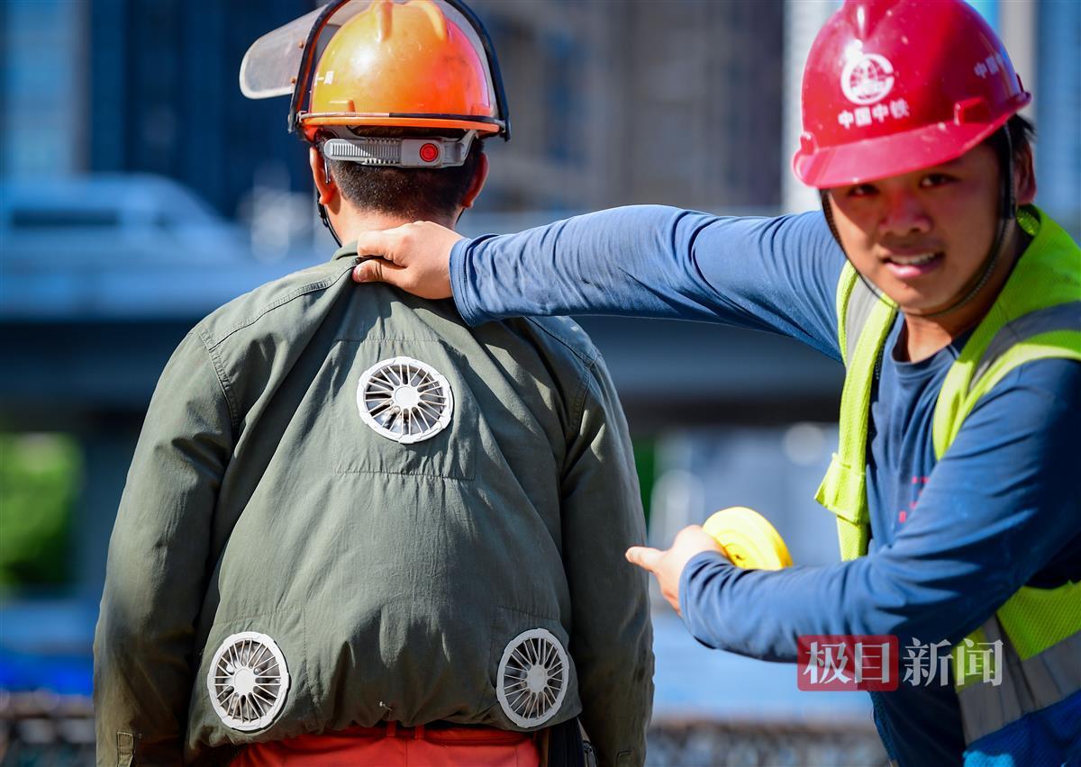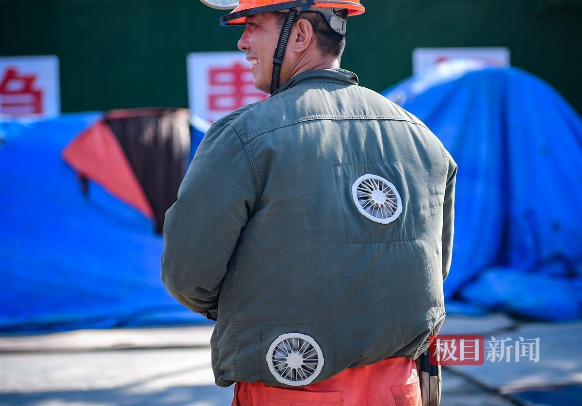 “我的衣服安装了三个小风扇,工作时稍稍凉快些,但这天气实在太热,加上电焊散发的热量,衣服还是被汗透了……”背上安装了3个小风扇的电焊师傅笑着对记者说。