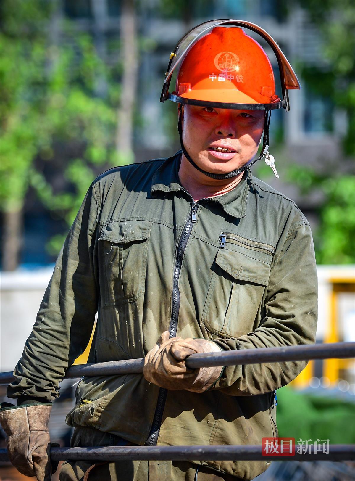 “早上凉快些,我们上班提前到了早上5点,到9点多钟太阳直射工地时,太阳会晒得钢筋烫手,我们的工人就会下班休息,到下午5点后前面两栋高楼遮住了太阳,工地阴凉些了我们再上班……”工地负责人告诉记者。