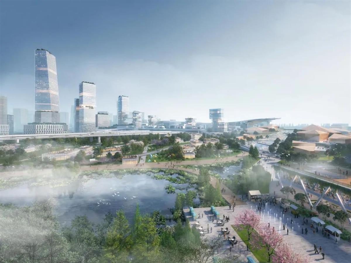 铁四院相关负责人介绍,中标方案以“平衡稳健、韧性低碳、效率体验、文化名片”为关键词,打造了武汉独有的、TOD4.0站-城-景融合共生的公共生活枢纽。汉阳站扎根武汉地域文化,以“晴川烟波”为概念,彰显文化自信。在交通资源配置上,以地铁站群为支撑,多触角联动站与城,重新构建站城平衡。在开发时序上,注重分期功能完善和收支平衡,通过沿高铁线打造功能复合的生态长廊,创造城泊共生、韧性生态的枢纽格局。未来,汉阳站将成为武汉“站城融合”的典型。