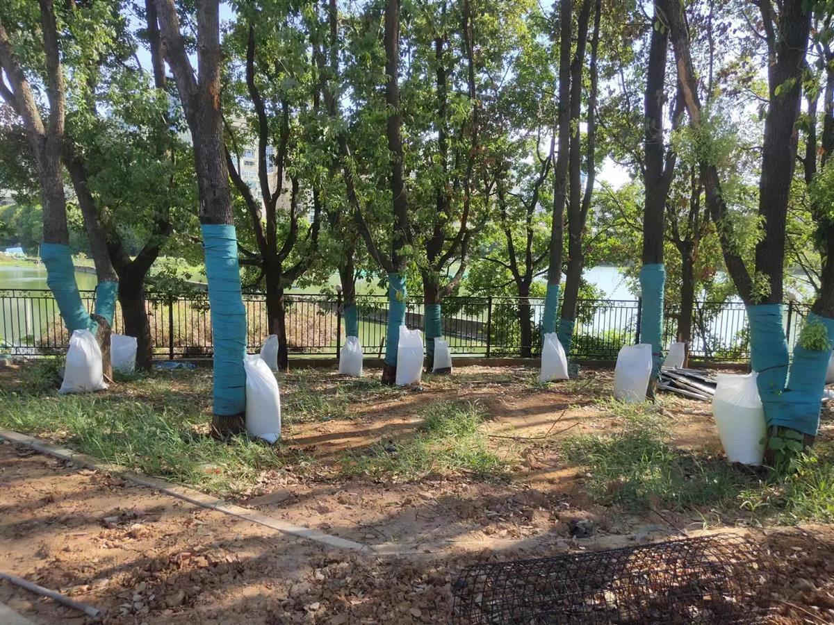 武汉市园林和林业局公园管理处许伟处长介绍,从6月底开始,公园管理处就印发了公园夏季养护工作提示,要求全市公园全力抓好抗旱保绿工作,科学调整浇灌频率,避免高蒸发时段进行浇灌作业,同时加强遮荫等措施,多措并举、科学精准做好抗旱保苗工作。同时,特别提醒各公园,浇水前先松土,再浇透水,乔木可挂水袋滴水,确保根系水分的需求,重点保障花灌木、多年生花卉、草坪和及新(移)栽的乔木等,不留死角。