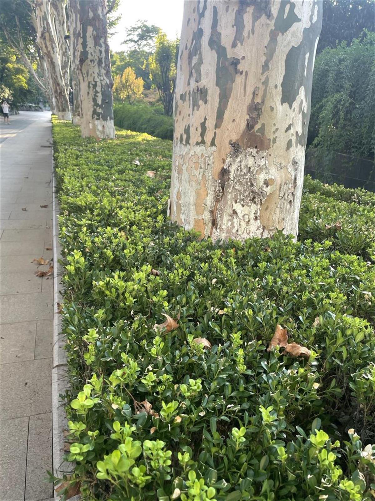 从植物生长习性来看,目前银杏、水杉和樱花抵抗高温能力相对偏弱。李俊正举例道,移栽的银杏缓苗期通常在2-3年,有的甚至4-5年还没缓过神,加之立地条件不好,根没扎下去,且又没在7月提前做足浇水的功课,目前部分区域就存在银杏叶子掉落情况。