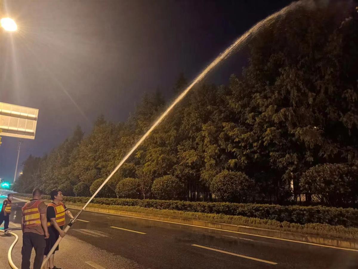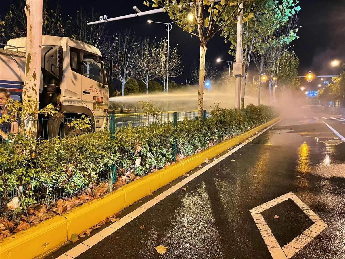 汉阳园林师傅夜间给植物洒水(通讯员孙悦提供)