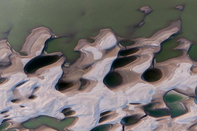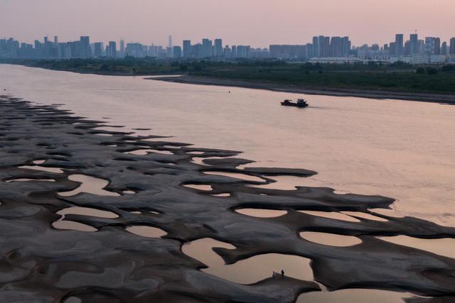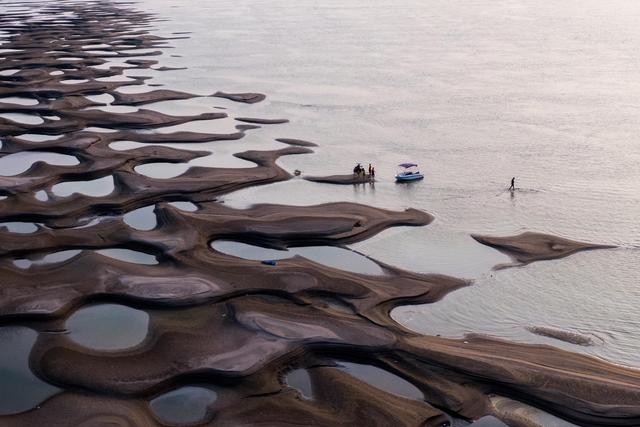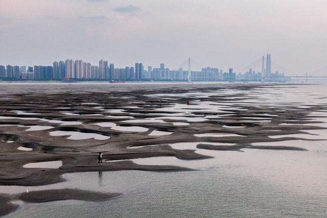 近日,长江武汉段水位持续降低,武汉市天兴洲露出大片滩涂。