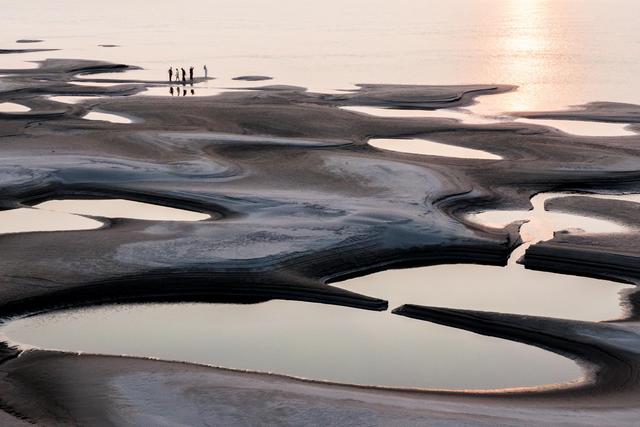8月25日拍摄的天兴洲露出的滩涂(无人机照片)。新华社记者 伍志尊 摄