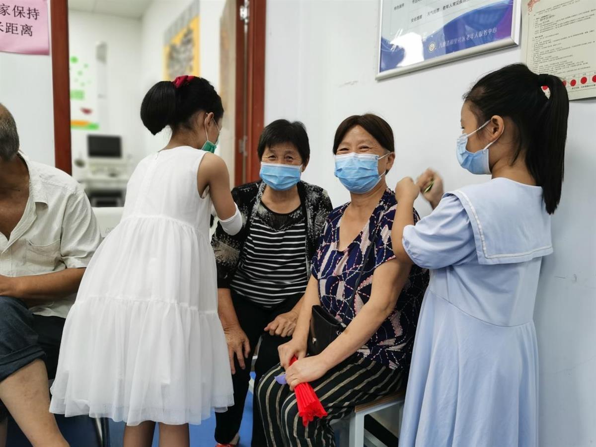 最后,在社区工作人员的引领下,孩子们来到社区老年活动中心为爷爷奶奶送孝心。工作人员随机组织一位老人和一个孩子组成一队。孩子们为老人搬来凳子,端来茶水并送上自己的祝福,还主动帮爷爷奶奶捶背,这让老人们很开心。
