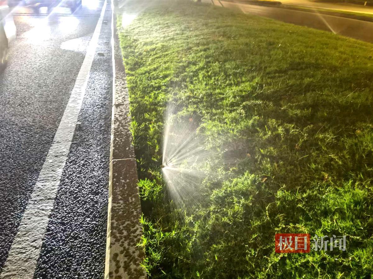 高新大道智慧灌溉系统夜间作业(极目新闻记者摄)