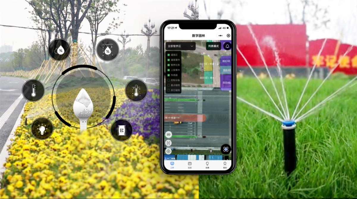 原来,在这些绿化带中,铺设着灌溉管网,滴灌带,滴头、喷头,还藏有物联网传感设备45个,可实时监测土壤含水量、水分蒸发蒸腾量等影响作物生长的要素。一旦相关指标超过设定值,系统会发出预警提示,建议补水。
