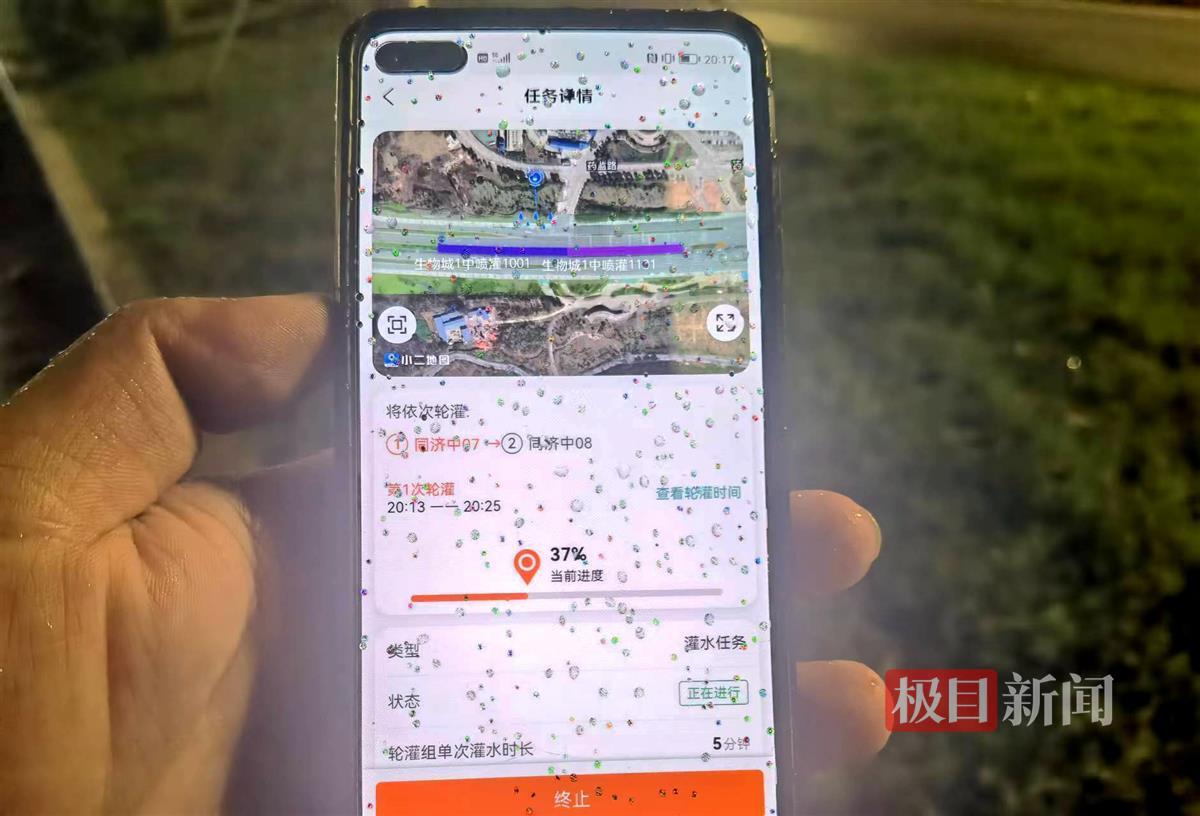 工作人员动动手指就能远程浇水(极目新闻记者摄)