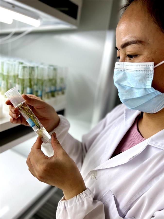 “好种子也能帮农民抗旱增收。”8月26日上午,在光谷生物城国英种业园,武汉艾迪晶生物科技有限公司的实验室里,性状开发总监邹洪锋博士手里拿着一支试管,里面一株嫩绿色禾苗根茎泡在培养液中。这禾苗,正是在培育的“陆稻”品种,耐旱、耐药性能优。