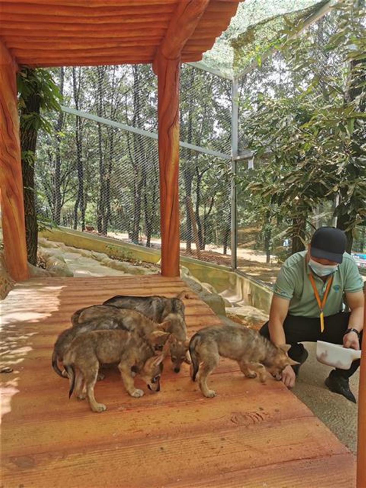 7月12日七匹小狼出生后,狼群数量急速扩张,为防止成年狼群伤害小狼宝宝,工作人员为狼妈妈及狼宝宝准备了独立的套房,与狼群完全隔离,母狼可以安心喂养狼宝宝。工作人员还会定时让小狼晒“日光浴”,保证它们健康成长,等小狼再强壮一些,武汉野生动物王国将引导它们融入狼群,回归大家庭。