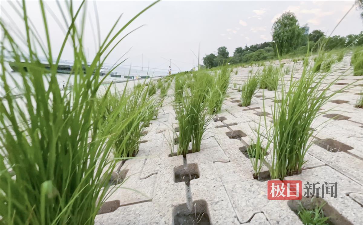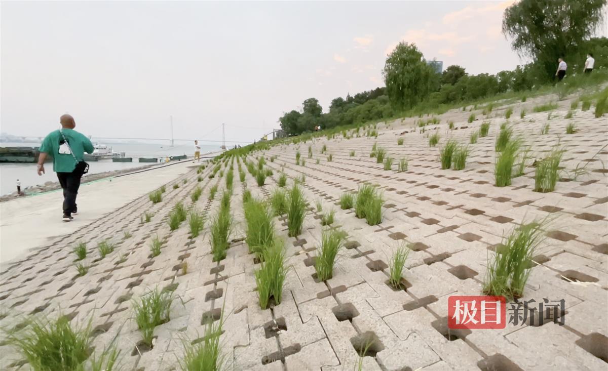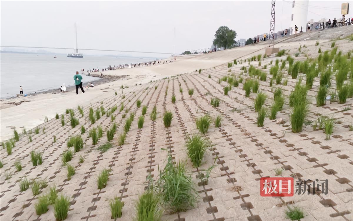 9月10日,极目新闻记者在长江武昌江滩段看到,生态护坡上多个品种的绿草长势旺盛,随风起舞。随着时代发展,河道护坡的方式也越来越多样化,武汉市内的水域面积占全市总面积四分之一,长江武昌江滩段运用生态护坡砖进行护坡,既有植物的生长,又有砖块对植物的根系进行加固,美观实用。