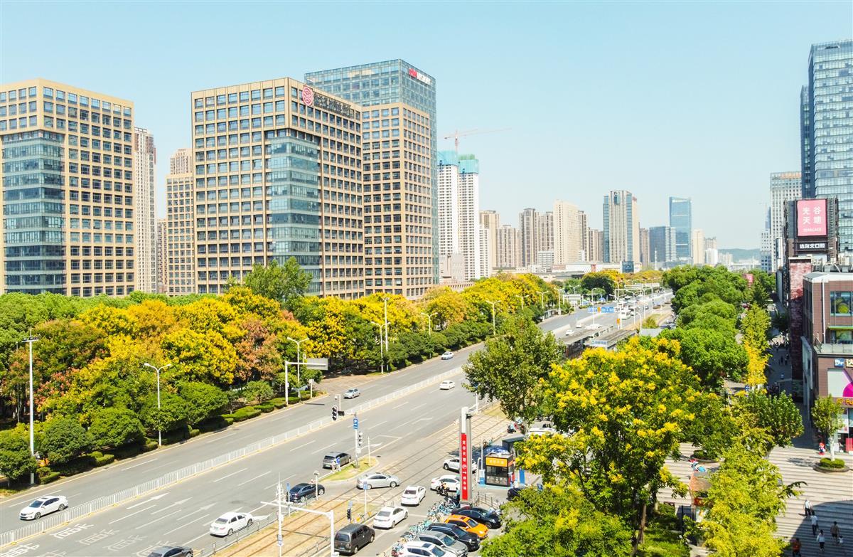 光谷金融港在金色栾花簇拥中