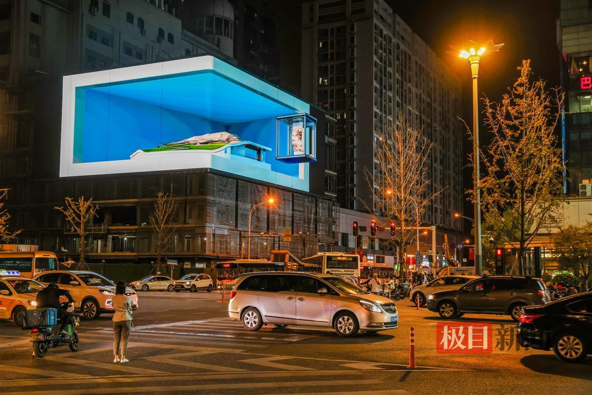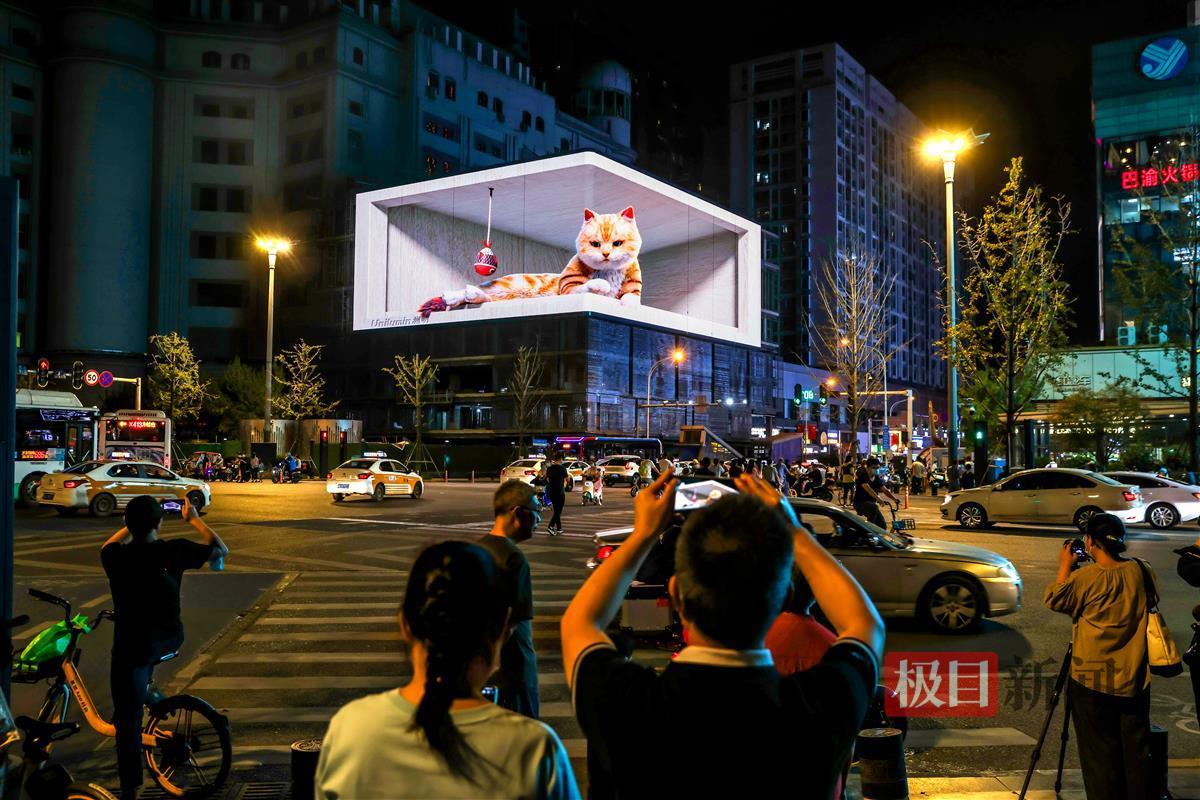9月24日晚,武汉市汉阳钟家村一户外大屏外围满前来打卡拍照的市民。汉阳造的子弹、展翅的黄鹤、旋转的莲台、逐浪的游轮、飞驰的高铁……炫酷的3D效果在巨大的3D屏幕上轮番播放。据了解,这是武汉最大裸眼3D屏“三镇之眼”,21日晚在汉阳钟家村商业区点亮。