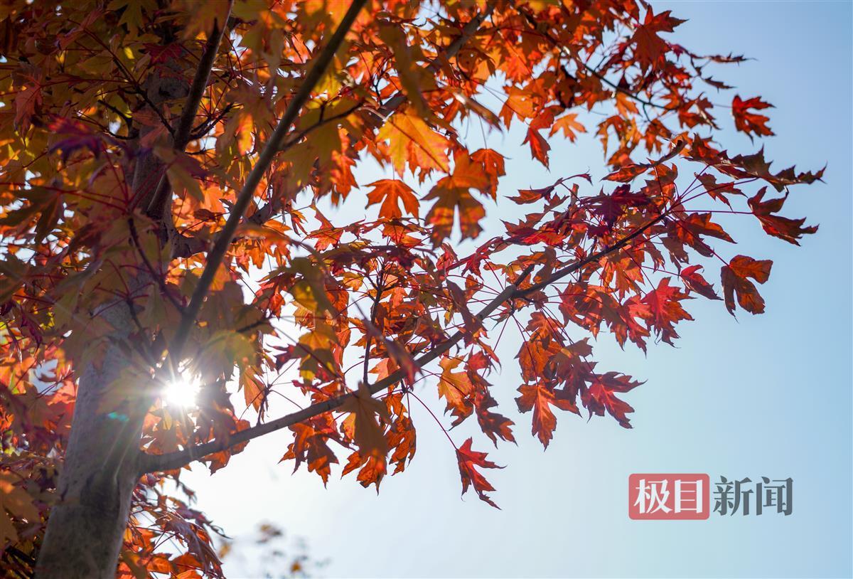 10月12日,在秋日暖阳的照耀下,武汉市武昌沙湖公园C区一处枫林的叶子显得格外的红艳。