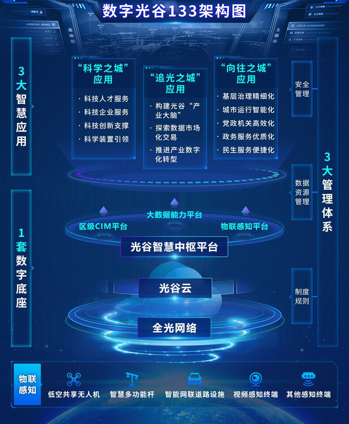 按照计划,光谷2023年聚焦数字底座建设,并围绕治理、监管和服务开展重点项目建设和系统集成整合。2024年聚焦“一网通办、一网统管、一网协同”等应用场景建设,推进区级跨部门、跨层级、跨业务协同,形成可复制推广的建设运营模式。2025年,聚焦产业经济智慧化应用建设,探索各领域应用功能创新,打造“数字光谷”特色样板。