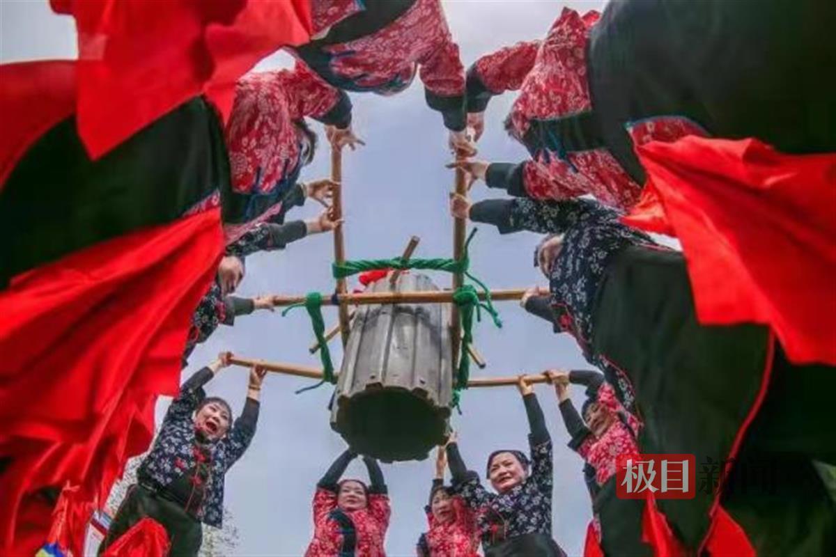 被誉为武汉市非物质文化遗产“通津夯歌”,将整场活动推向高潮,“修渠打坝、夯基筑屋”,通过通津村10余名女性的精彩表演,完美呈现劳动的热闹景象。随着号子一起,表演者们边打夯边唱歌,歌声夯声相互交织,节奏统一,一呼百应,气势恢宏,充分彰显了妇女能顶“半边天”的精神风貌。表演者还随机应变,即兴编词,诙谐逗趣,赢得现场阵阵掌声。