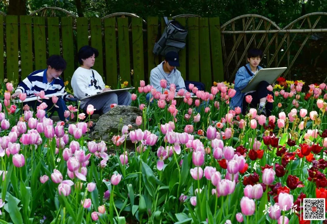 4月9日,春光明媚,武汉植物园内不少绘画爱好者正在写生。记者李永刚 摄