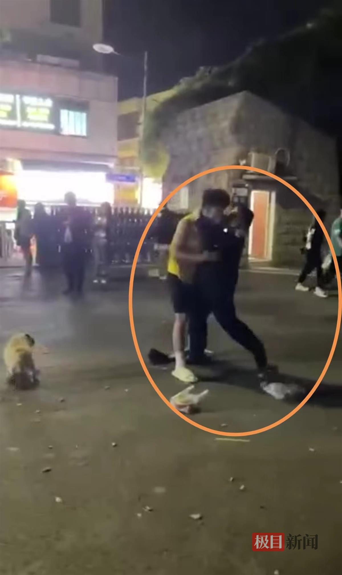 极目新闻记者在视频中看到,事发后学院其他保安赶到现场及时制止,并拉开了正在冲突的两人。张先生表示,事发后,该段视频在学院的多个班级及学生宿舍的微信群传播,看到视频后他选择向楚天都市报极目新闻反映情况。“应该是该男生想把宠物狗带进学院,但被保安拦住,随后双方发生冲突。”至于视频中身穿黄色球衣的男生是谁,张先生并不认识。