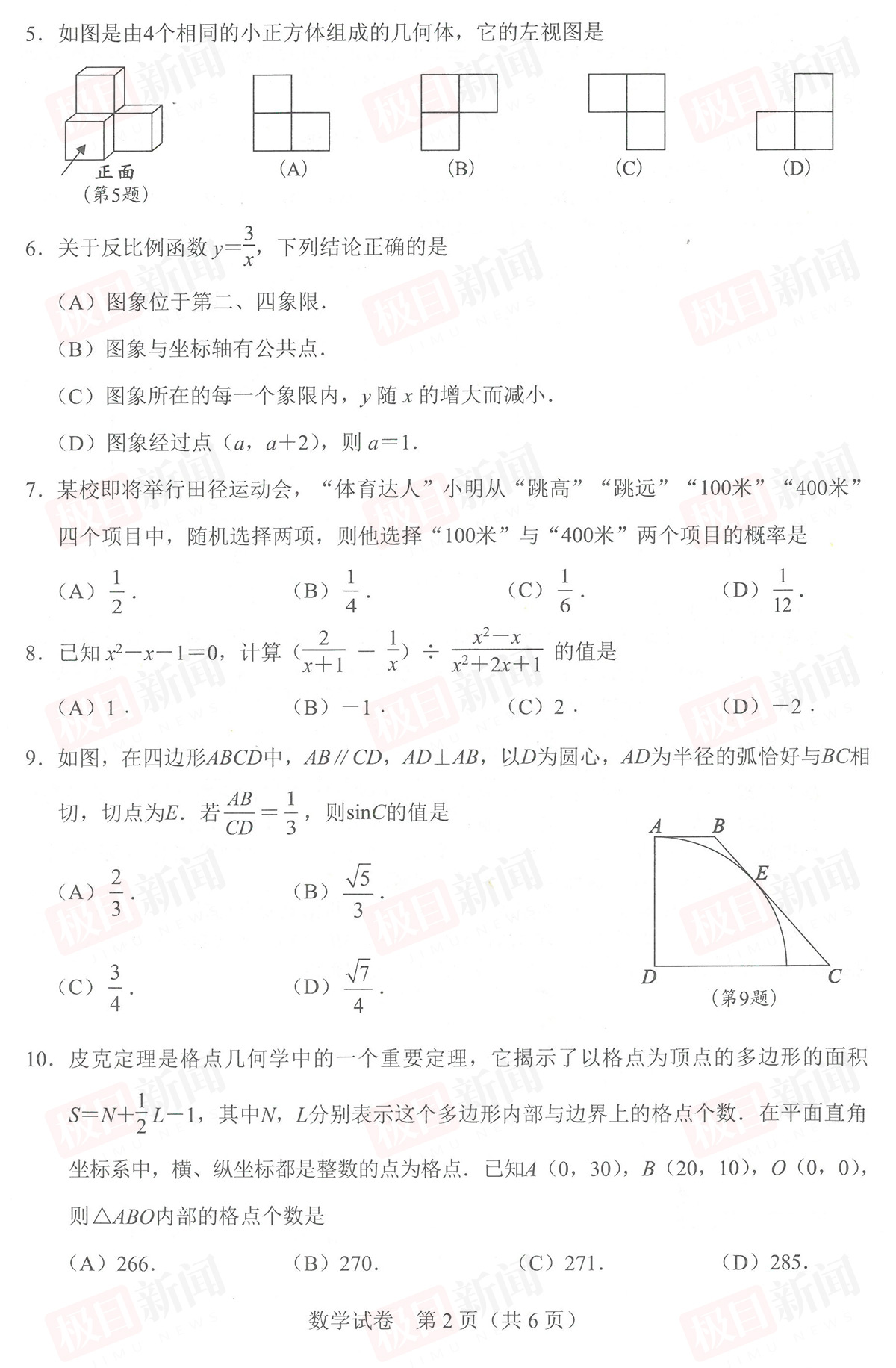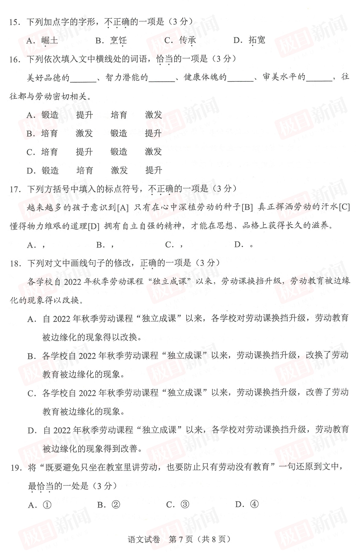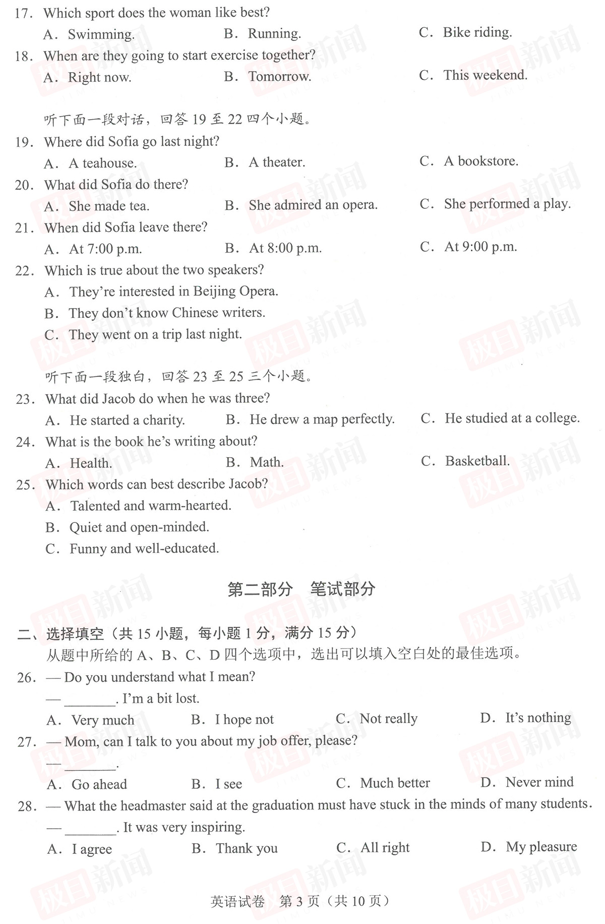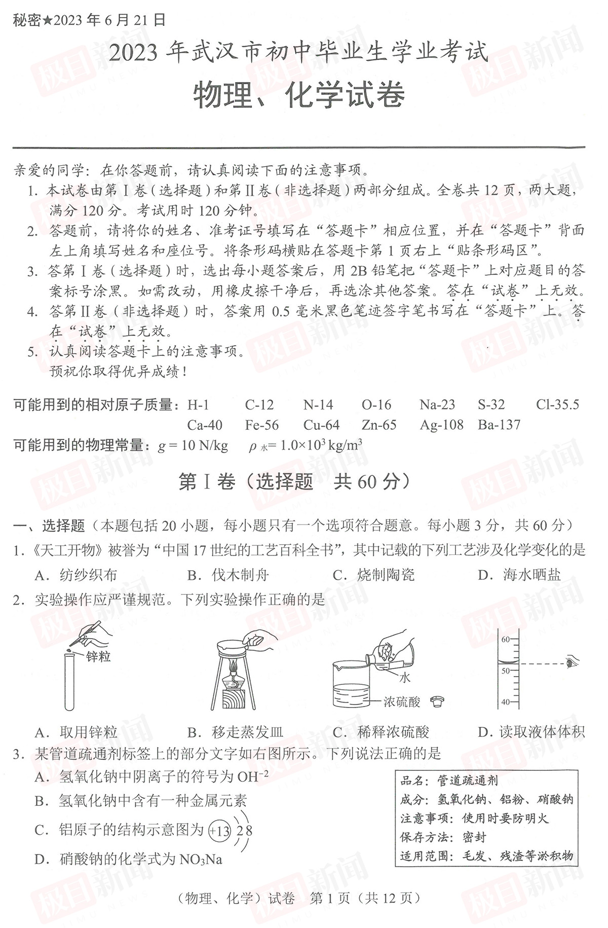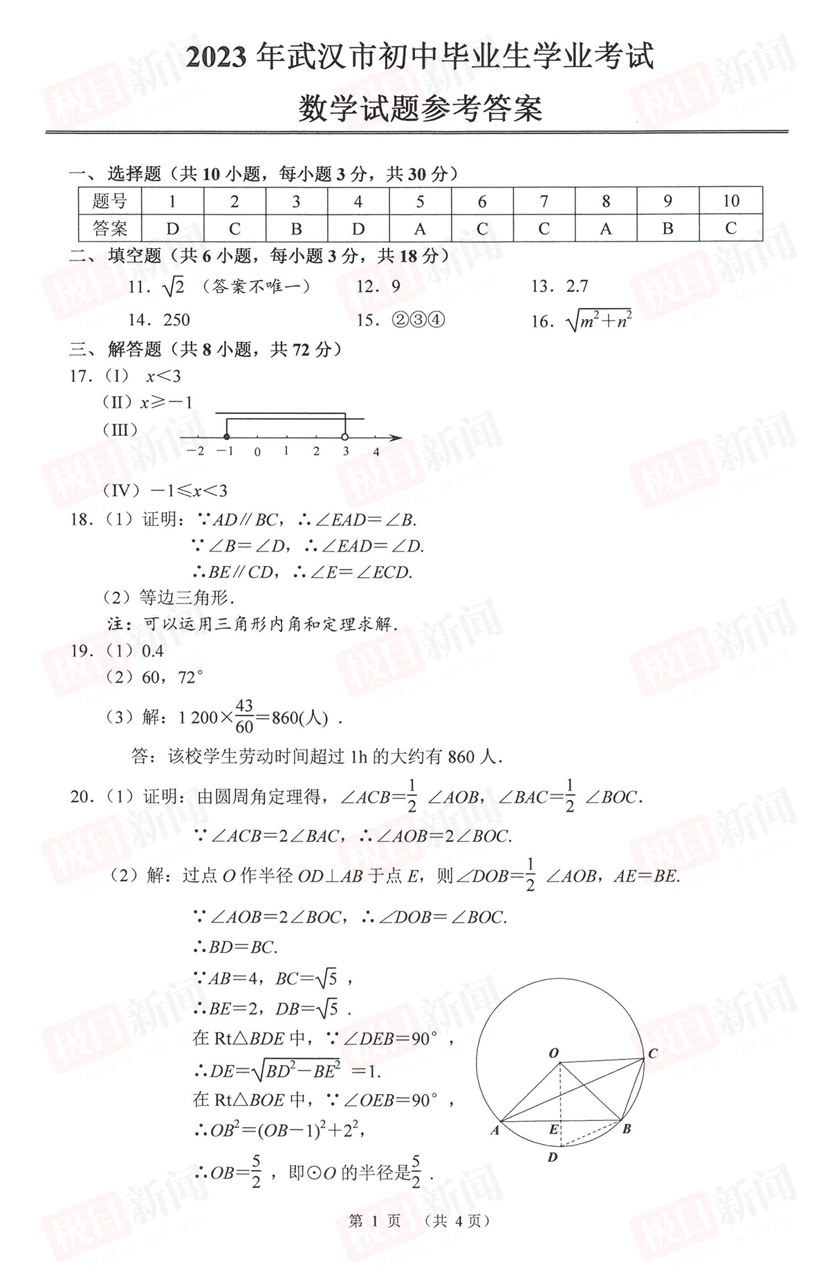6月22日,2023年武汉中考试卷和参考答案公布。