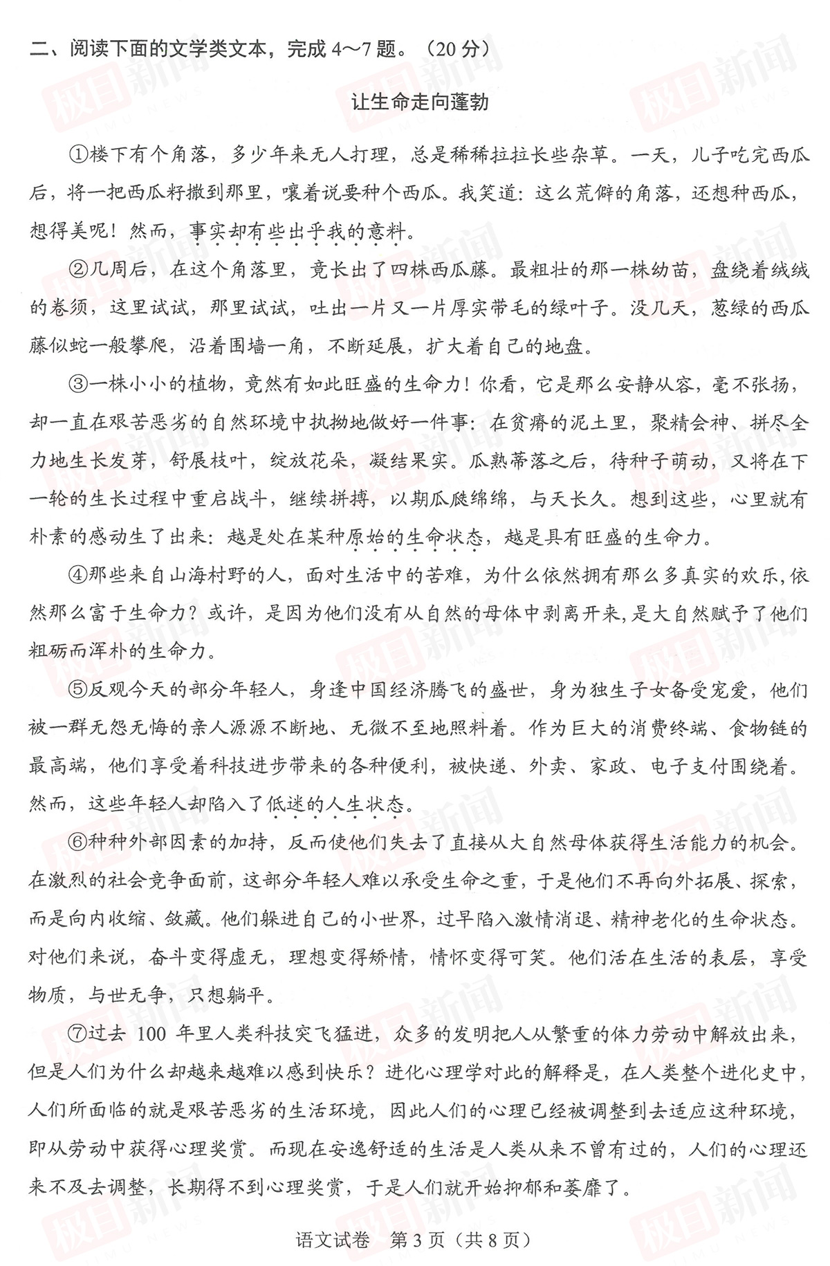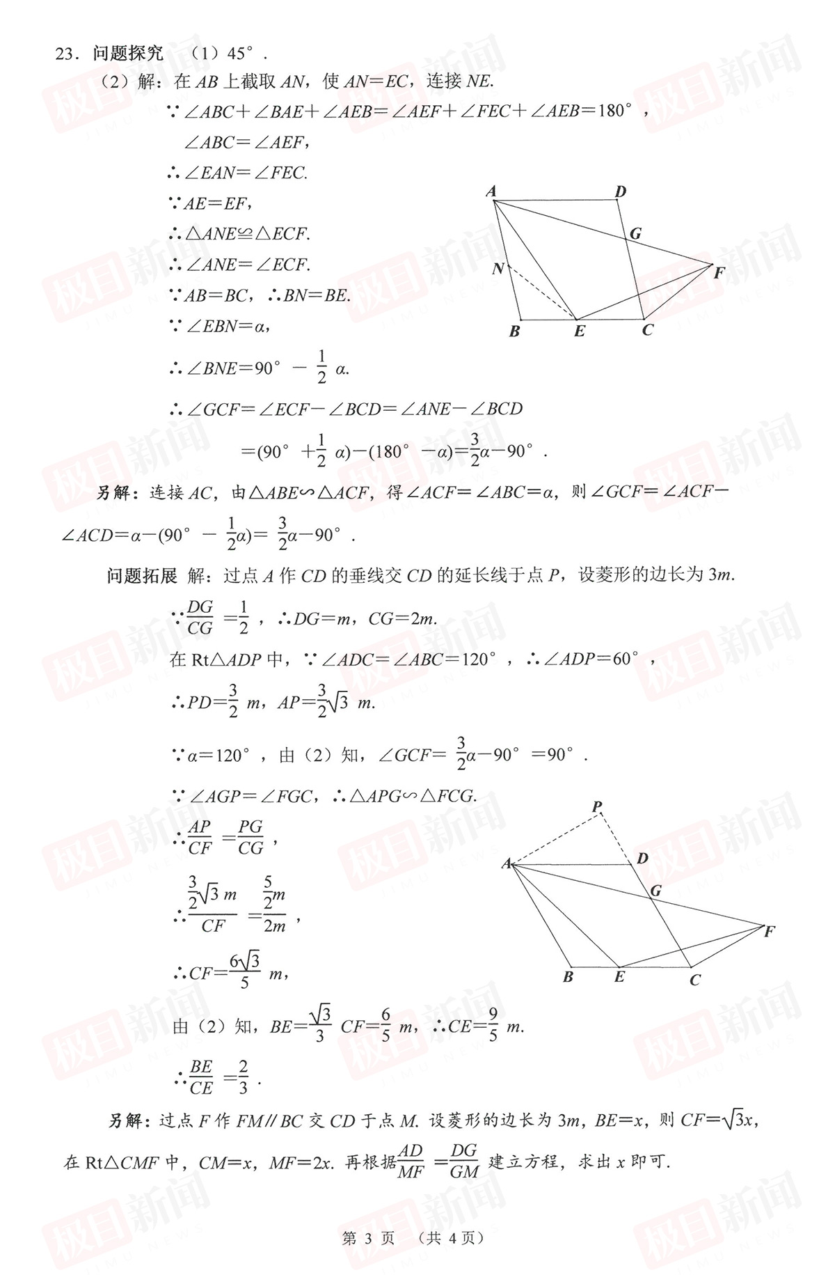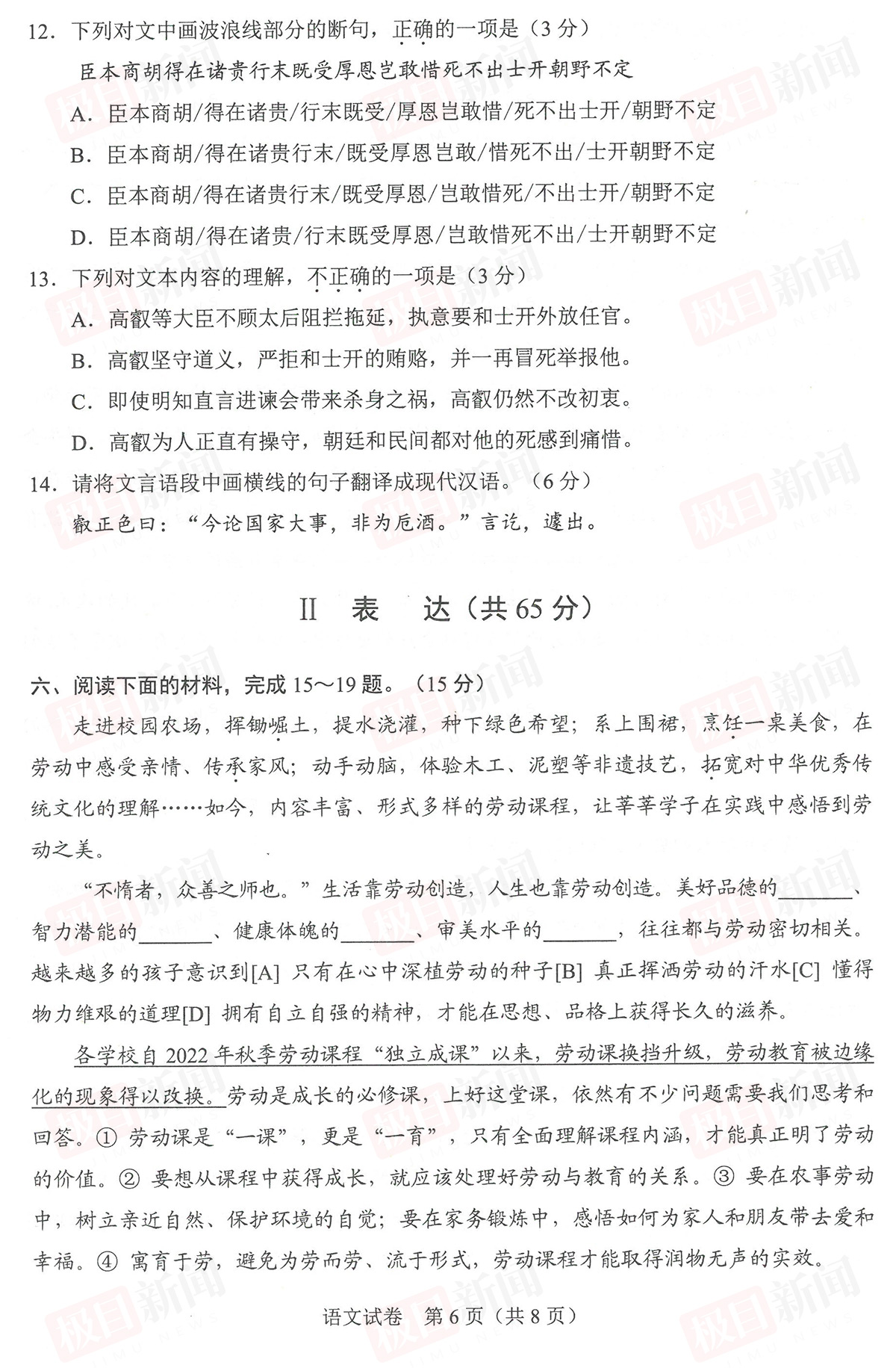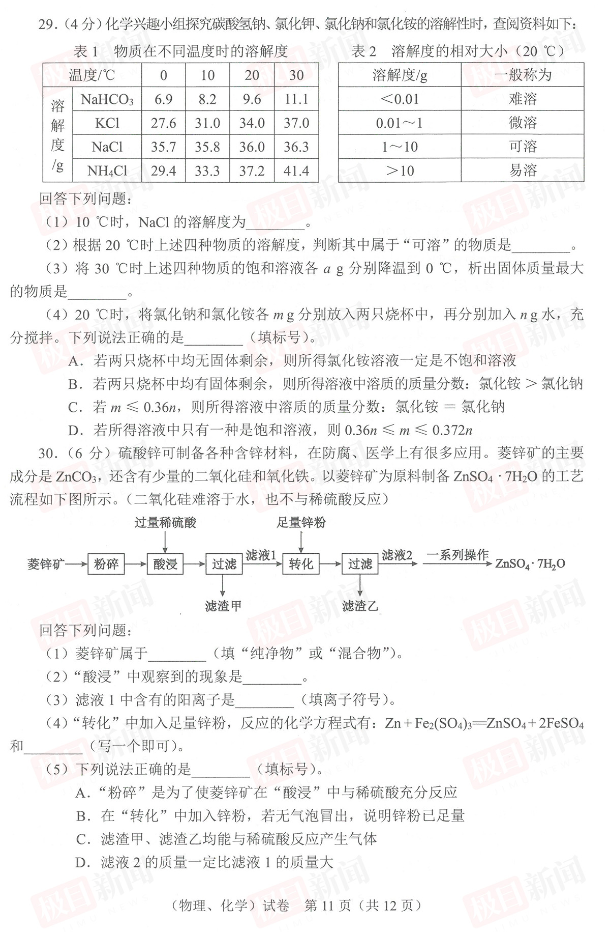 6月22日,2023年武汉中考试卷和参考答案公布。