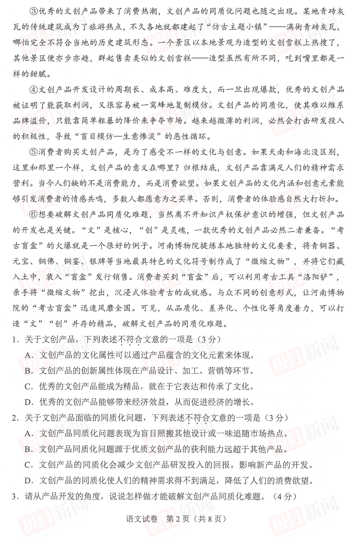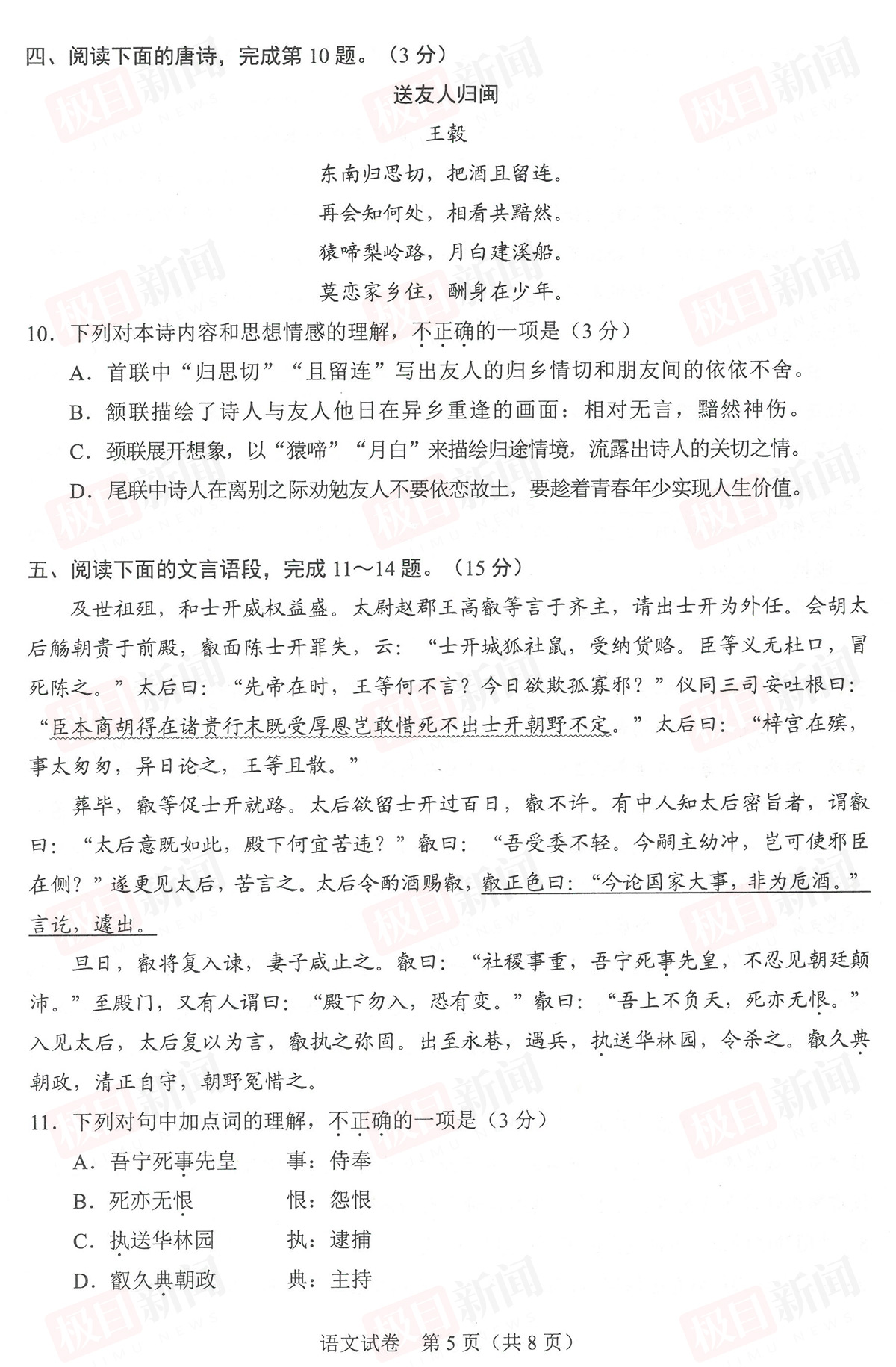 【语文试卷与参考答案】