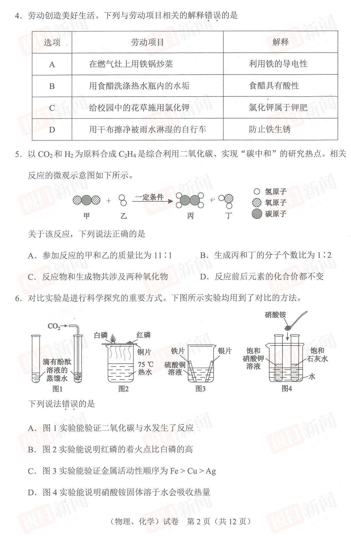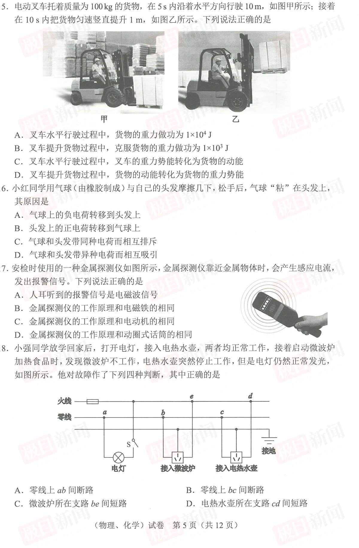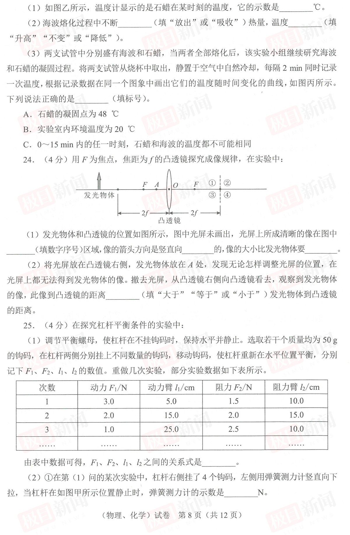 【理化试卷及参考答案】