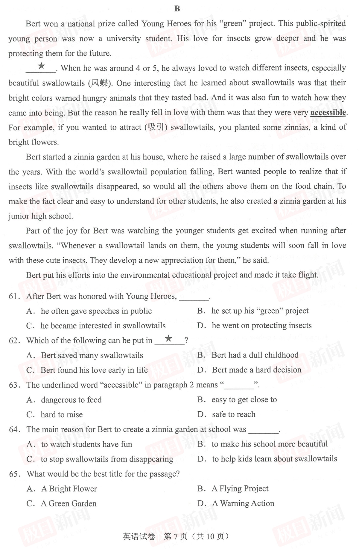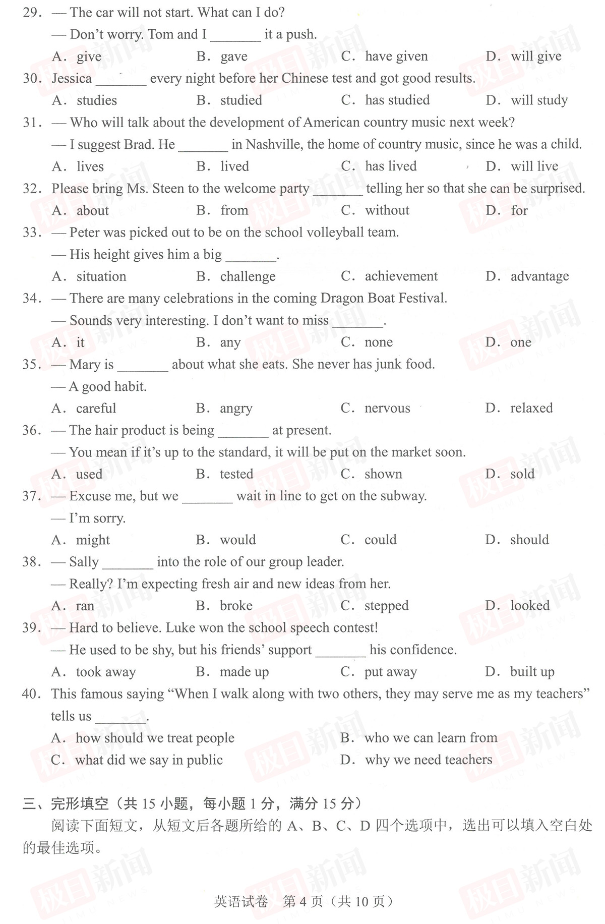 【英语试卷与参考答案】