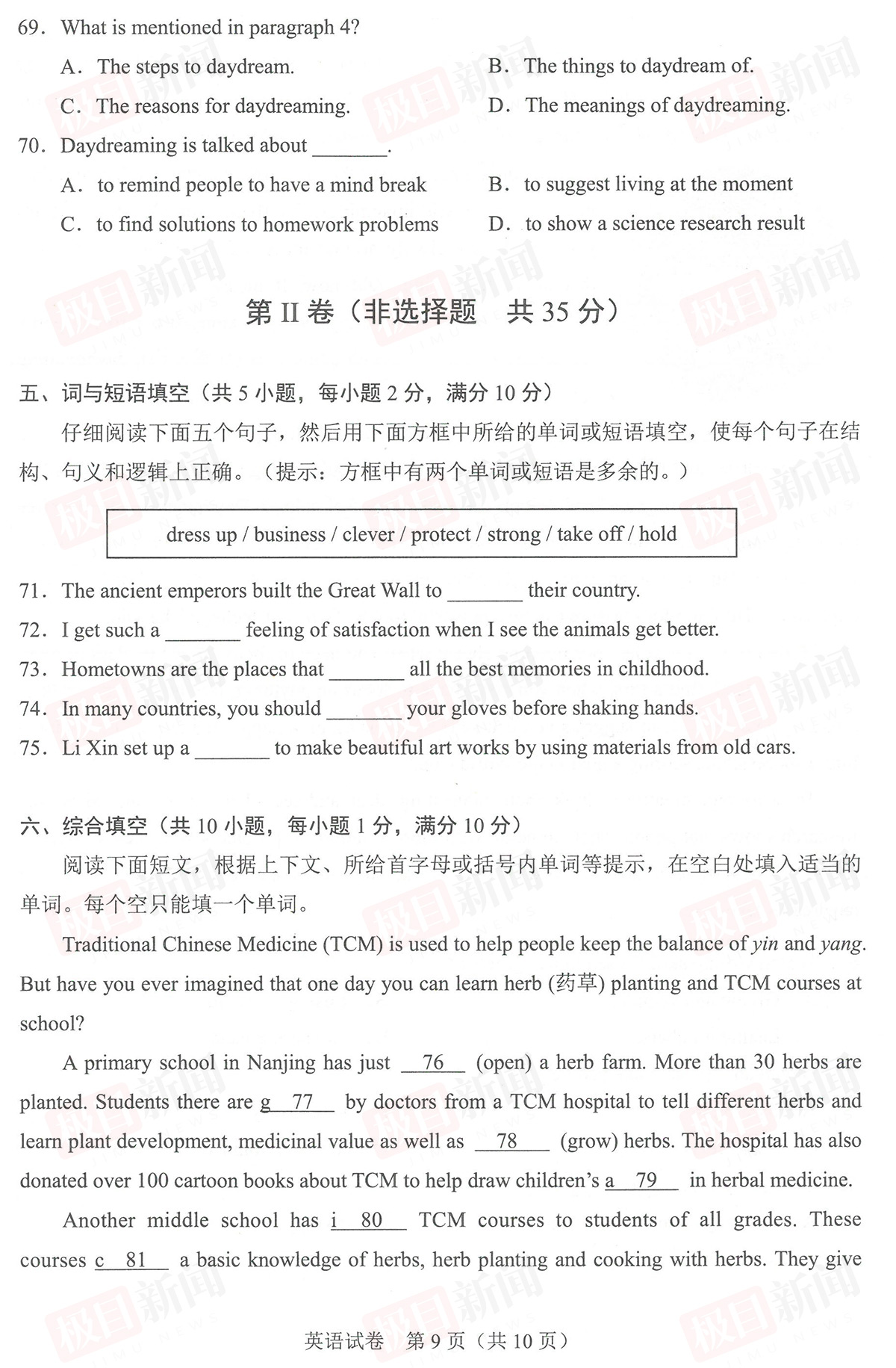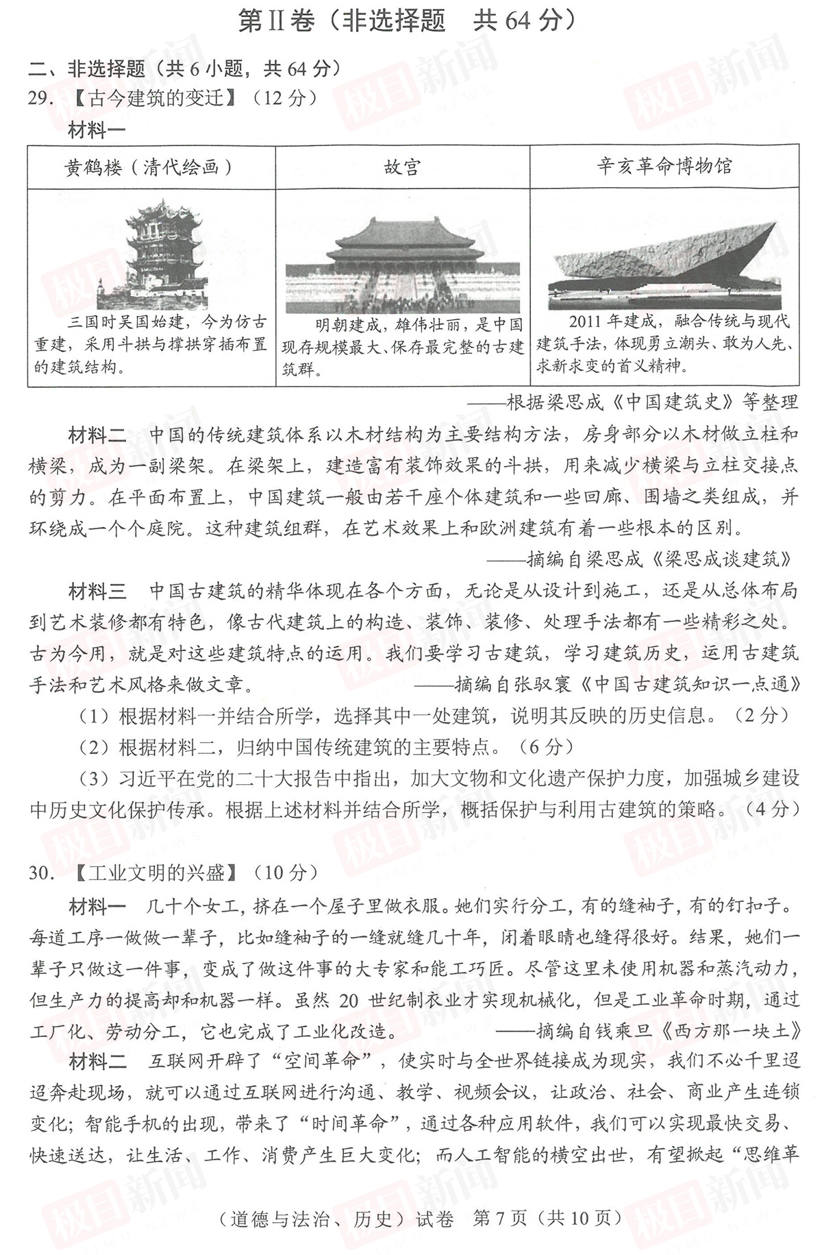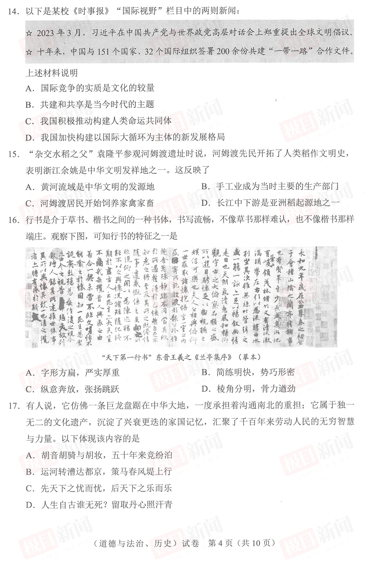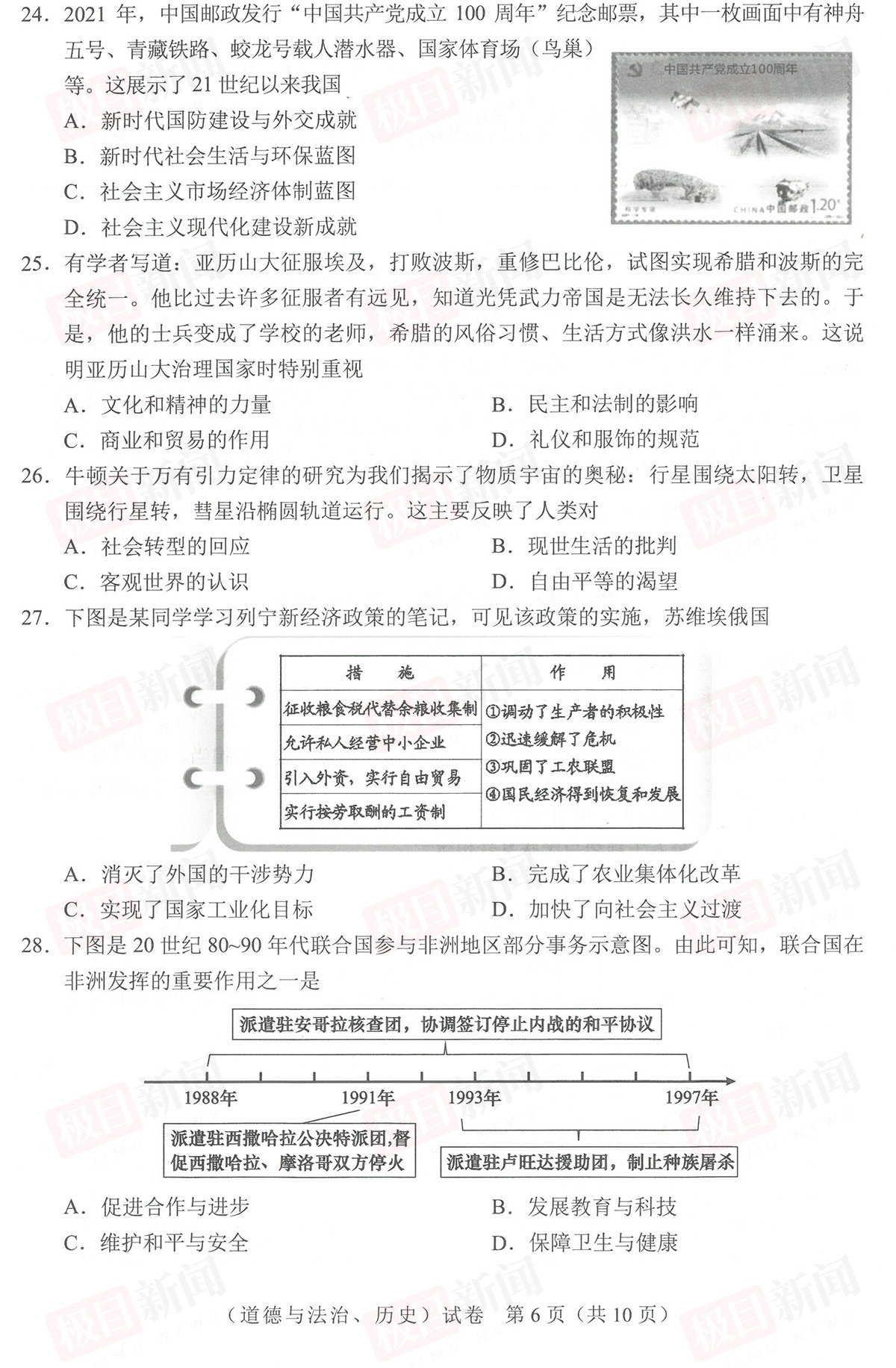 【道法、历史试卷及参考答案】