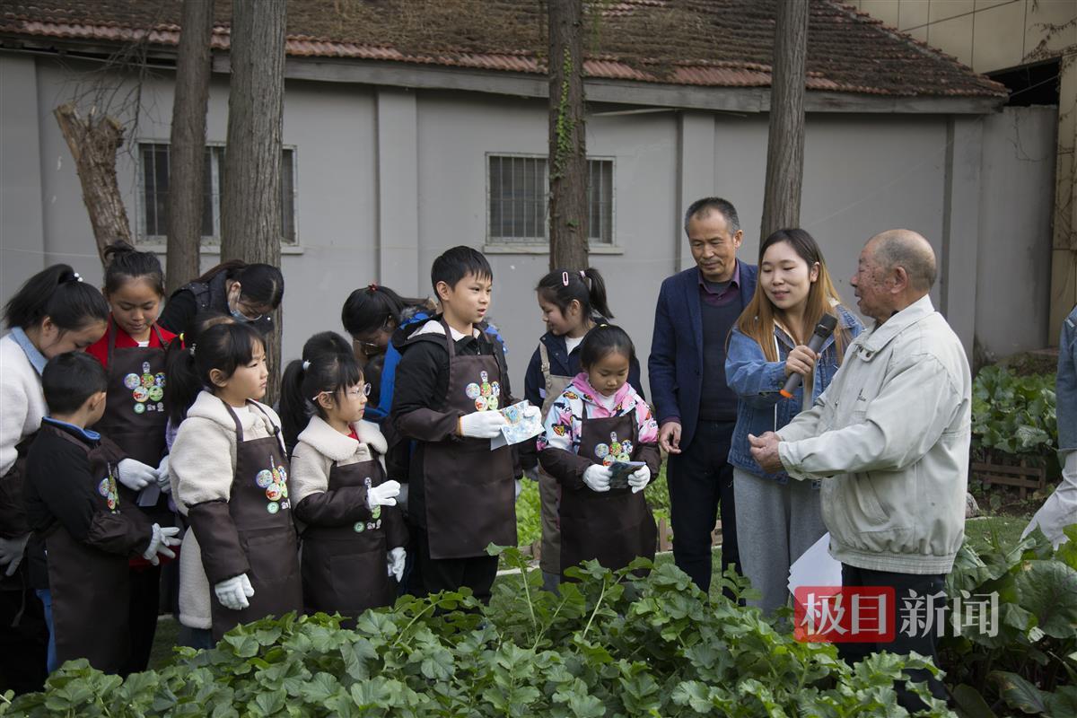 张家湾街道农科院社区菜科所小区居民、90岁的陈绍汉给辖区青少年讲解种植萝卜的知识