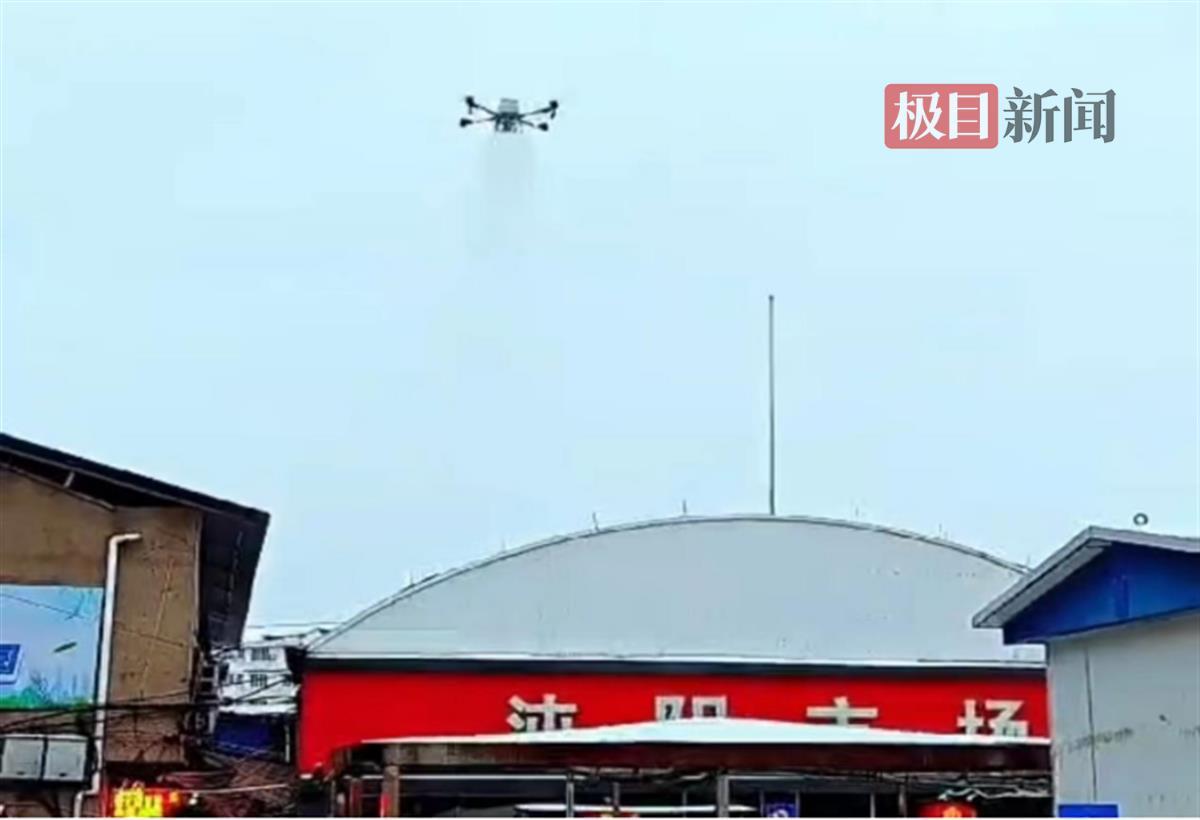 2月22日傍晚,武汉经开区沌阳街道综合执法中心采用专业无人机高空喷撒融雪剂除积雪,最大限度消除农贸市场、夜市等区域因顶棚积雪造成的安全隐患。