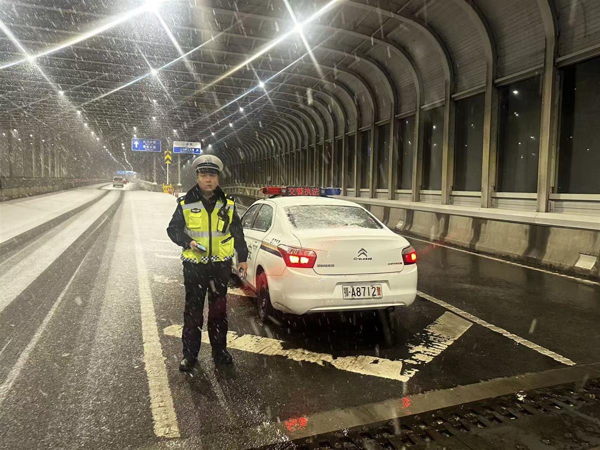 武汉交警优化雪天事故处理流程,对轻微事故引导当事人使用“交管12123”APP快速处理,减少现场滞留。在关键路口路段加强指挥疏导,有效防范大面积长时间拥堵,确保主干道通行有序;同时强化信息发布引导。全天候监测全市道路结冰、高速管控等路况信息,通过新闻媒体和武汉交警官方账号,向广大交通参与者滚动播发实时路况和预警信息,发布雨雪天气安全出行提示。