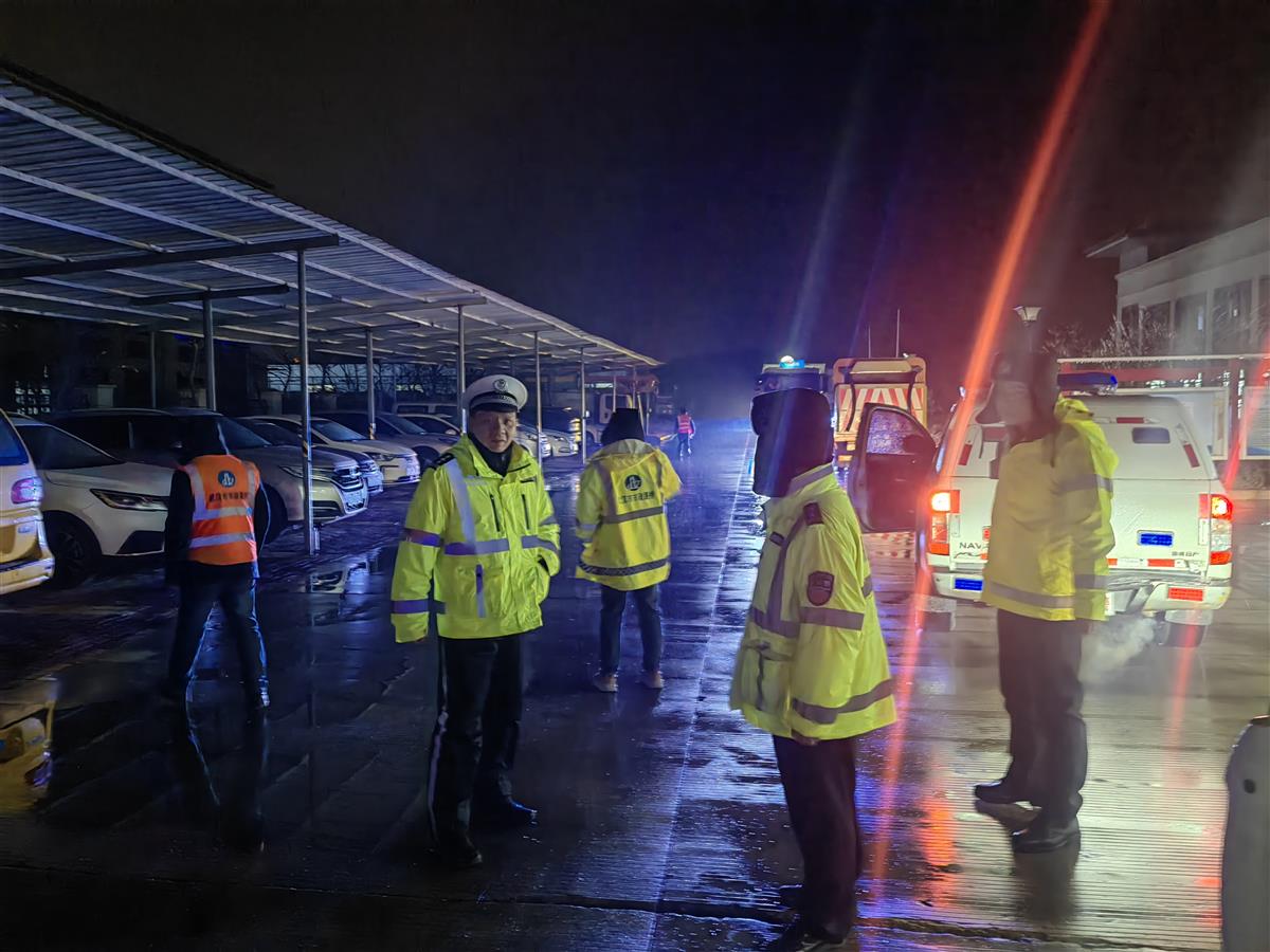 凌晨4时,长江新区交通大队领导带队巡控并快速处置路面突发情况。应急车辆按区域高效配置,巡逻待命,路面出现故障和事故车辆时,救援拖车能够第一时间到达现场,开展施救、快速清障,确保道路及时恢复畅通。
