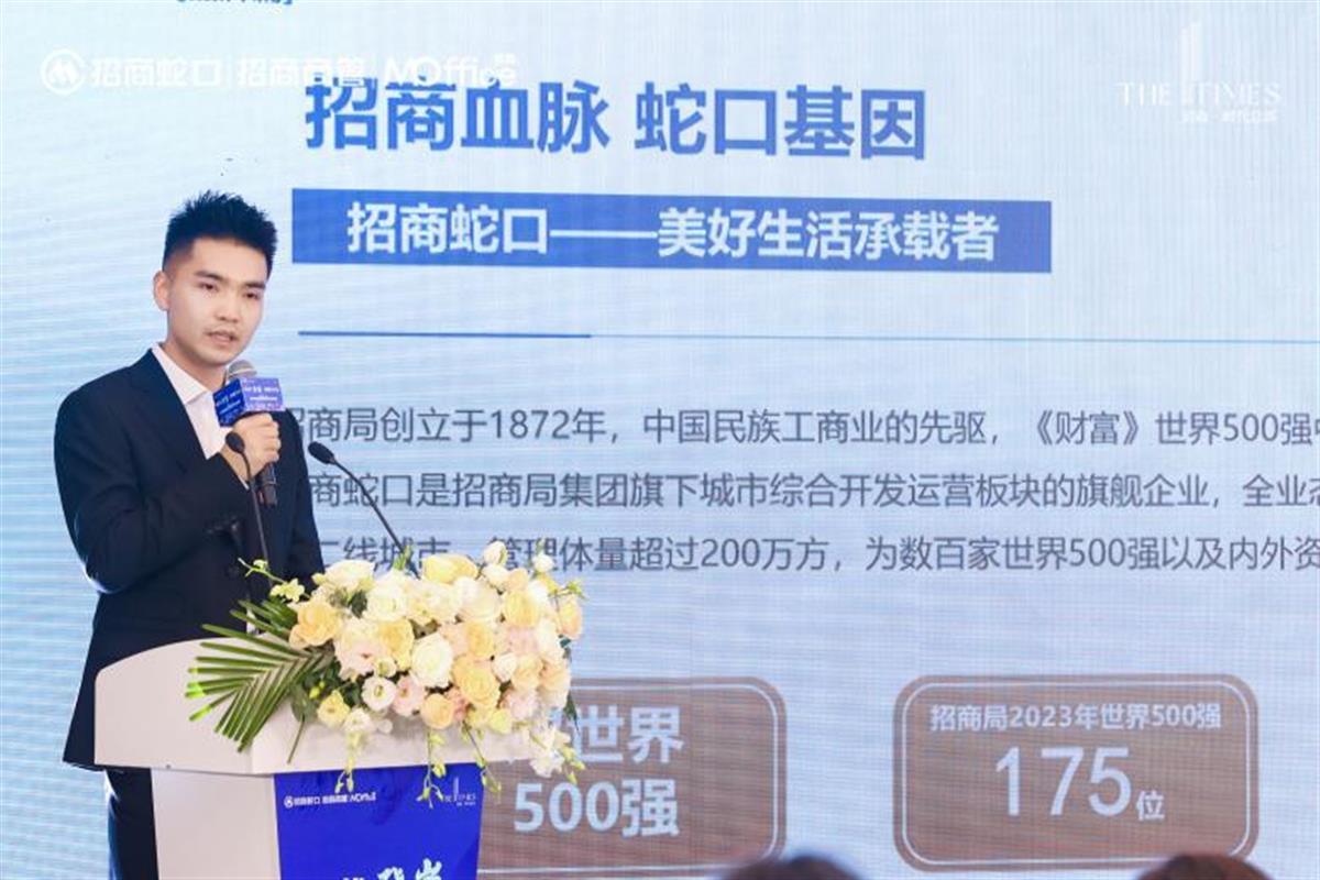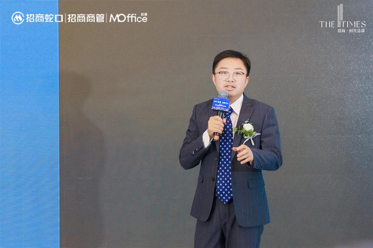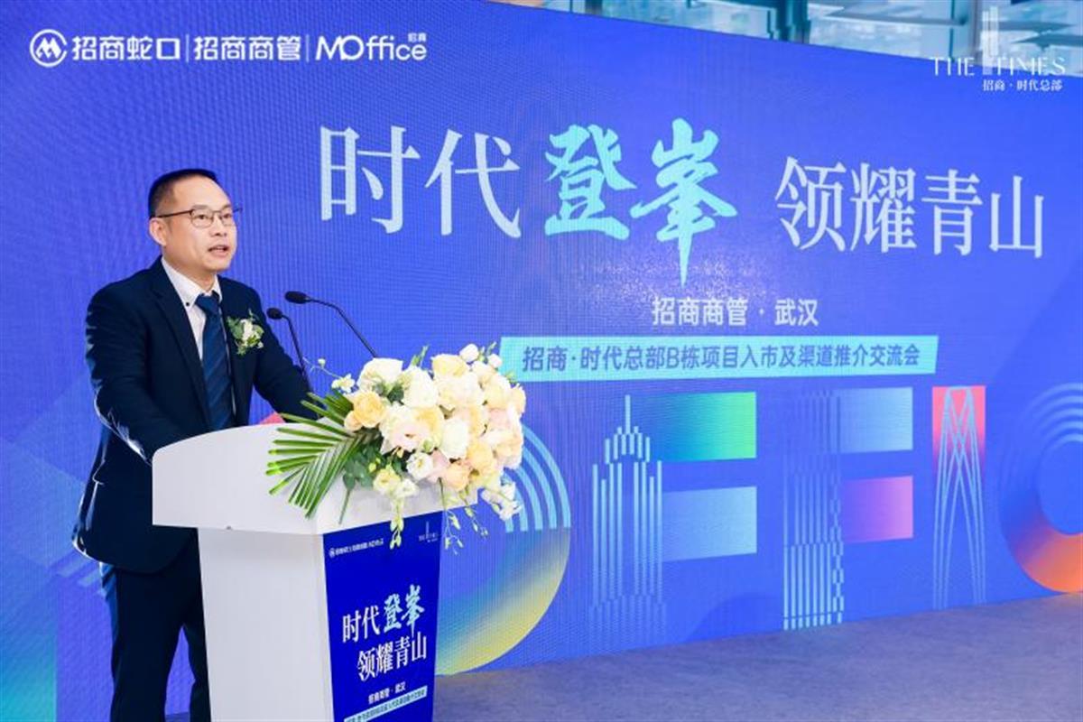 招商商管副总经理、招商商管深圳区域副总经理、招商商管写字楼管理中心总经理、招商商管深圳区域写字楼业务部总经理刘中流为活动致辞。刘总表示:“蛇口,中国改革开放的发源地;青山,共和国钢铁长子的诞生地。招商因受蛇口的滋养而迎来了二次创业的辉煌。同样,招商来到青山也深深地感受到了这片诞生共和国钢铁长子的良好投资环境。招商时代总部从拿地之日开始,公司便投入了大量的专业力量进行积极研究,一方面保证产品的入市能够代表公司的作品,另一方面也能够让时代总部的入市提升青山片区整体办公体验。时代总部作为招商商管今年入市的地标写字楼,既是全国重点项目,同时也是公司写字楼提档升级、淬炼团队、打磨招商能力的重要机会。”