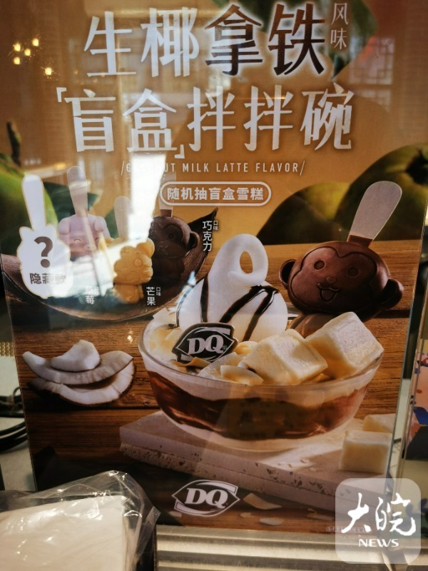 事实上,餐饮+盲盒的营销模式并不新鲜,但商家似乎屡试不爽。一家品牌冰激凌店就推出了一款“盲盒”拌拌碗:生椰拿铁风味,有四款随机小动物盲盒棒,分别是已知的巧克力、芒果、草莓口味,还有一个隐藏款口味,售价35元起。“带着孩子来,她点名要买的。”大皖记者来到该品牌在包河区的一家店内探访时,顾客张女士表示,被8岁的女儿“种草”后,她也觉得好玩,又好吃,“忍不住下手”。