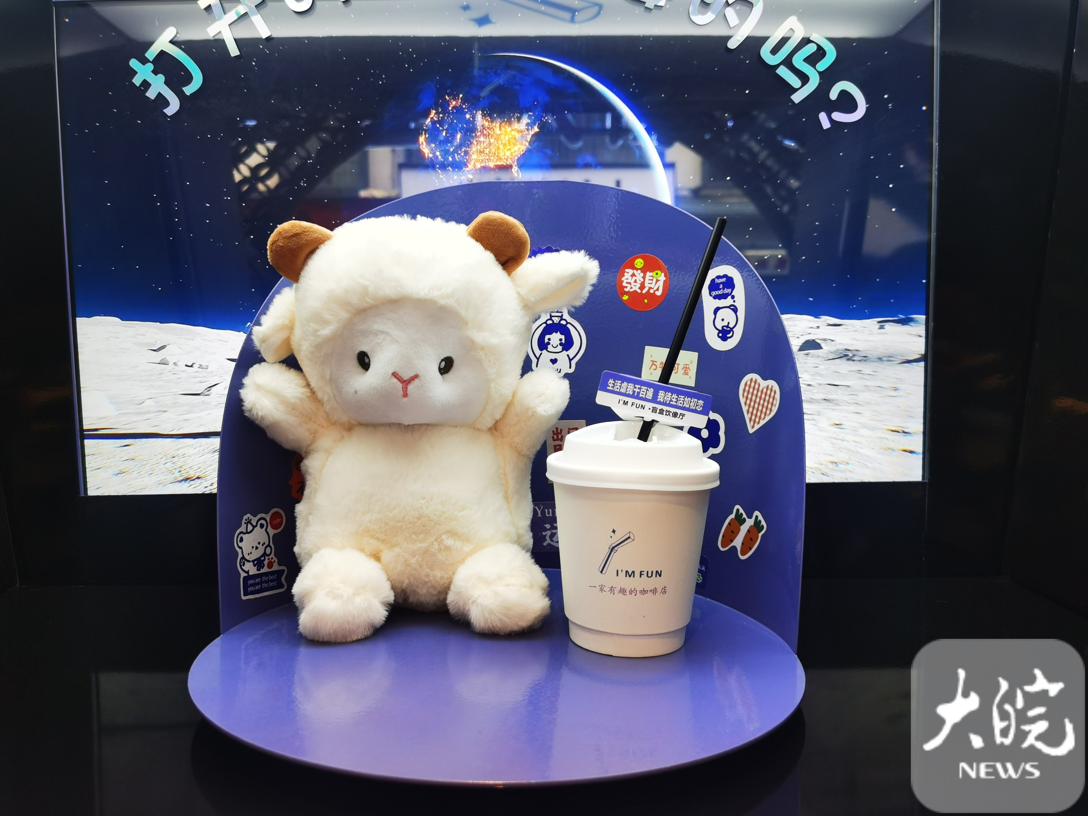 记者选择在某平台以团购价19.8元购买一款“我的快乐”主题套餐,包含1杯饮品1个礼物。商家进行验券后,询问记者需要茶饮或咖啡,并告知记者稍作等待。两三分钟后,音乐响起,记者按动红色按钮后,饮品和盲盒礼物出现,为一杯拿铁咖啡和小羊玩偶,仪式感很足。