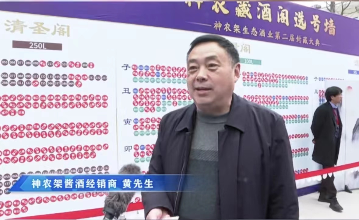 一大早,神农架酱酒经销商黄先生在封藏大典现场订购了3200斤酱酒。他告诉记者,去年就买了7000多斤,神农架生态酒业一直以来都坚持“生态好,酒更好”的理念,推出的系列神农架酱酒具有大曲酱香型白酒的典型风味,获得了市场的认可。他今年一共卖了8.9千斤,预计还会有不少人会来购买,所以特地趁着神农架酱酒“限时封藏价”又囤了3200斤。